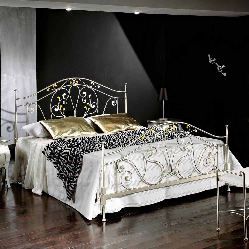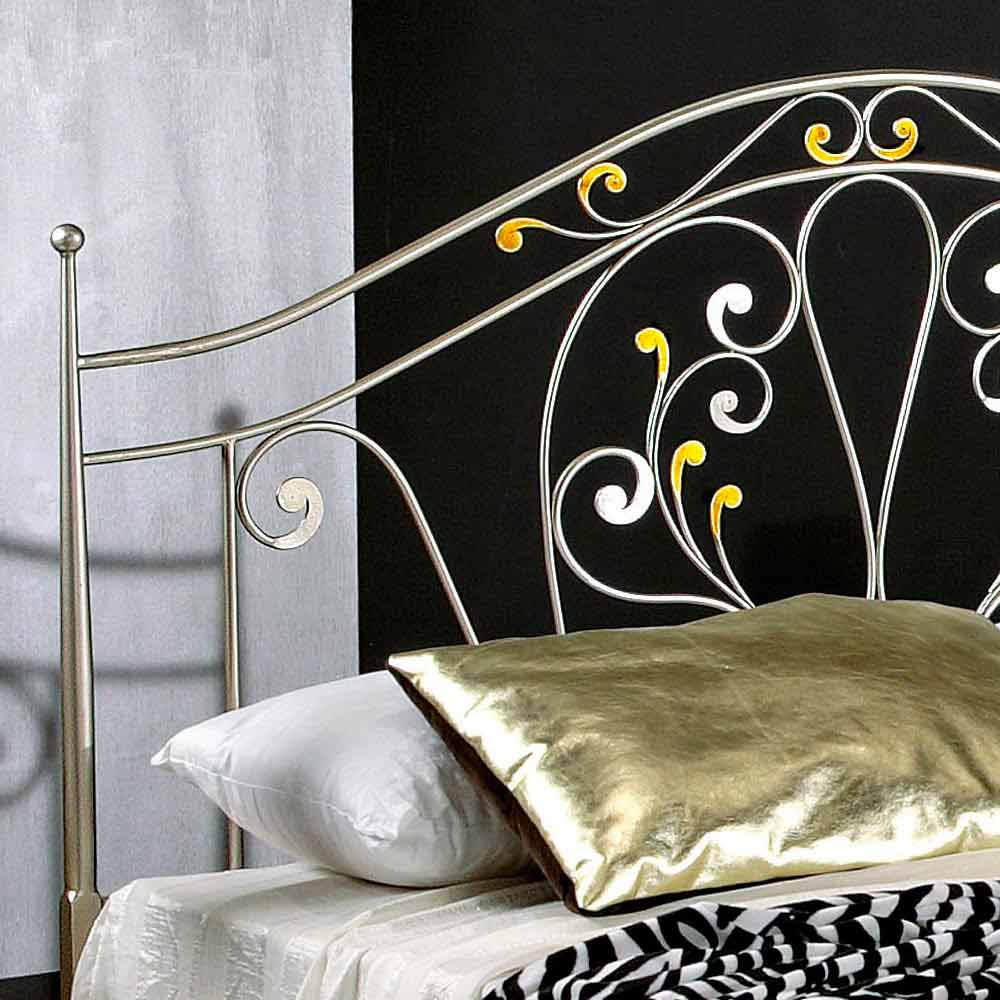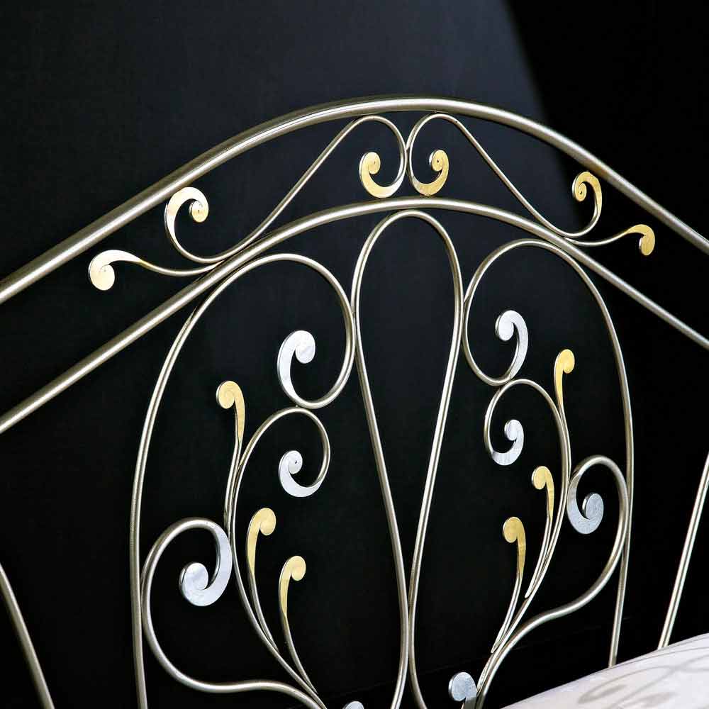 سرير مزدوج من الحديد مصنوع من حديد جيسيكا، تصميم كلاسيكي، صنع يدويًا في إيطاليا تم تصنيع هذا السرير يدويًا في إيطاليا على يد حرفيين خبراء ويتميز بلمسة نهائية فضية. يتم تزويده بلوح أمامي ولوح خلفي وقضبان جانبية.