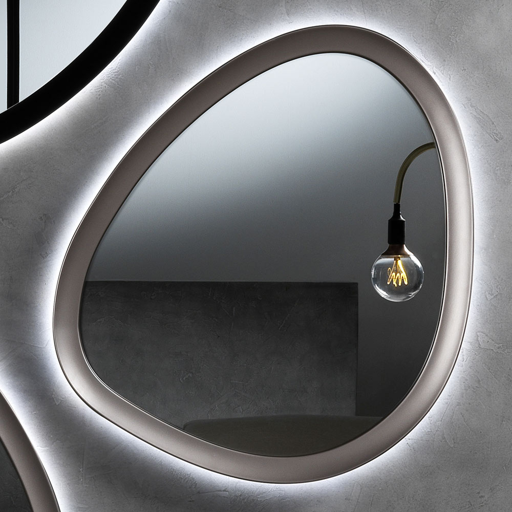 انغمس في سحر هذه المرآة ذات الإضاءة الخلفية ، فهي قطعة أثاث حقيقية تُحوّل كل جدار إلى معرض فني عصري. بفضل شكلها، تبتعد عن المألوف، لتصبح نقطة محورية تجذب الانتباه وتُحفّز الخيال.
