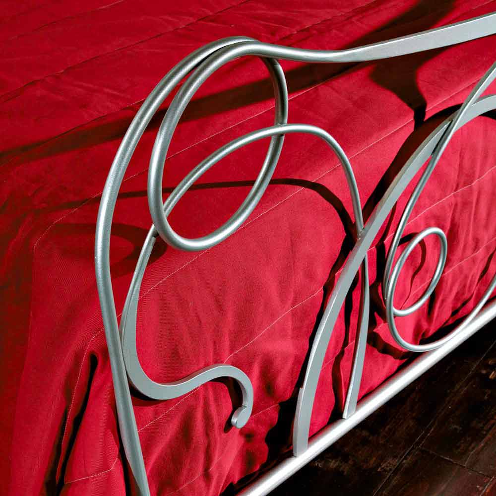 سرير مزدوج من الحديد المطاوع الإيطالي Zoe، مصنوع يدويًا في إيطاليا، مناسب لقاعدة سرير مقاس 160 × 190 سم تم تصنيع هذا السرير يدويًا في إيطاليا على يد حرفيين خبراء ويتميز بلمسة نهائية فضية. يتم تزويده بلوح أمامي ولوح خلفي وقضبان جانبية.