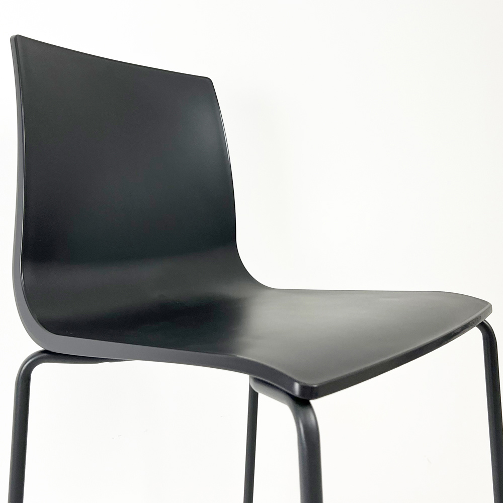 كرسي عصري مصنوع في إيطاليا مكون من غلاف بوليمري قابل لإعادة التدوير مع لمسة نهائية من الفحم وهيكل رباعي الأرجل مع مسند قدم أنبوبي من الفولاذ بنفس لون المقعد.بقطر 16 ملم مما يسمح بتكديس ما يصل إلى 4 وحدات كحد أقصى.