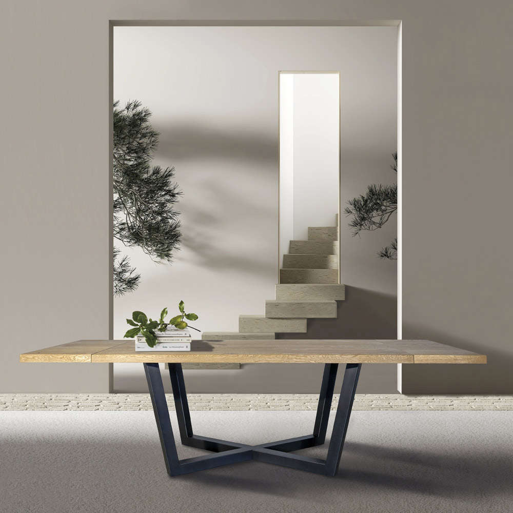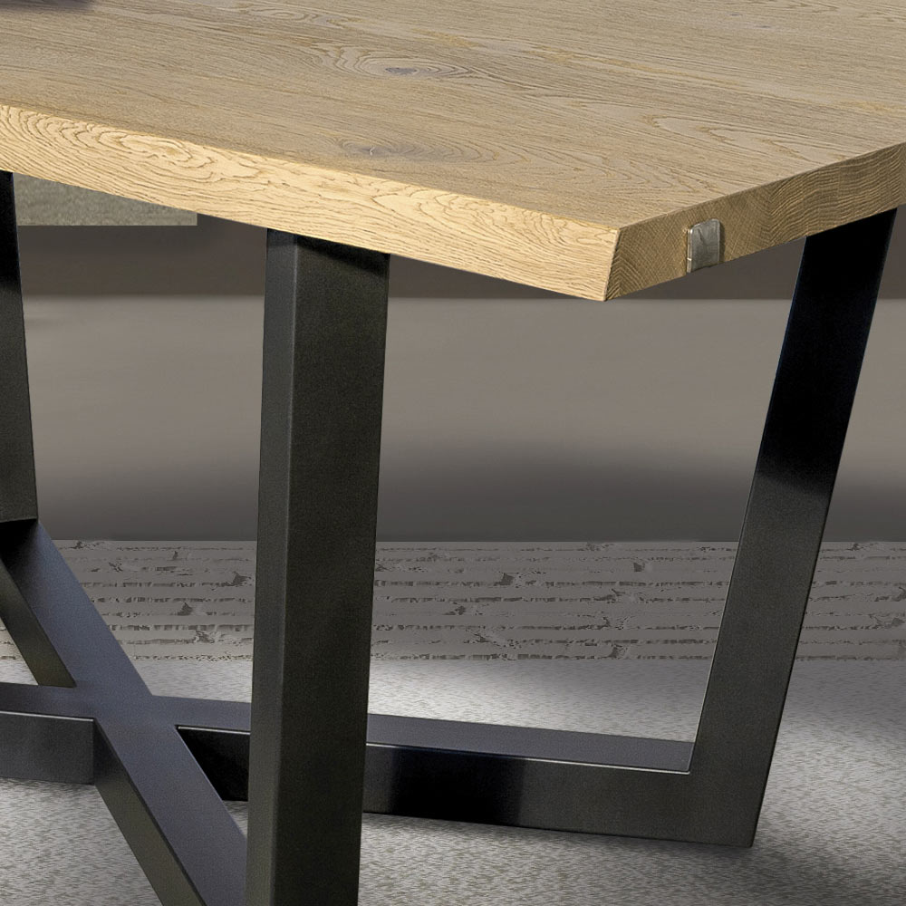 طاولة مصنوعة من خشب البلوط المعقود وقاعدة معدنية صنع في إيطاليا.