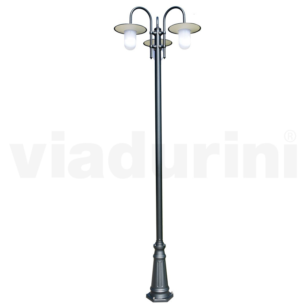مصباح حديقة على الطراز القديم مكون من 3 مصابيح من الألومنيوم صنع في إيطاليا.
