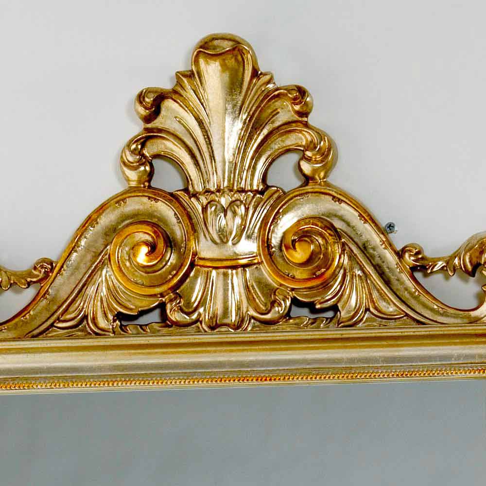 مرآة أرضية/حائط كبيرة بتصميم تاج كلاسيكي، 86×220 سم تتميز مرآة تيارا بصناعة يدوية متقنة باستخدام مواد عالية الجودة وخبرة حرفيين إيطاليين مهرة. الإطار مصنوع من الخشب المزخرف بنقوش بارزة. مطلي بطبقة فضية مكة. مرآة كريستالية، سمكها 4 مم. صنع في إيطاليا. مُزود بخطافات للتثبيت على الحائط.