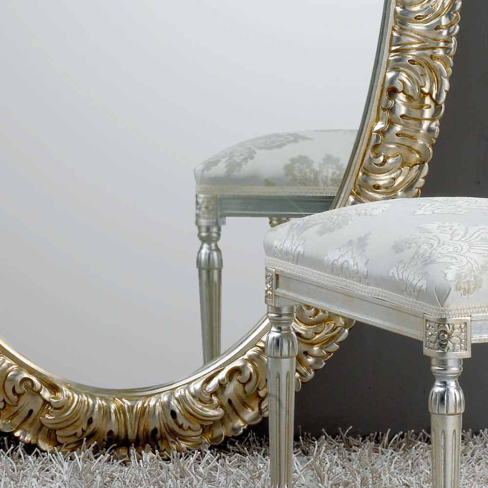 مرآة أرضية/حائط بيضاوية كبيرة من لايف، 114×190 سم تتميز مرآة "لايف" بصناعة يدوية متقنة باستخدام مواد عالية الجودة وخبرة حرفيين إيطاليين مهرة. الإطار مصنوع من الخشب، ومطلي بطبقة فضية عتيقة. مرآة كريستالية، بسمك 4 مم، مصنوعة في إيطاليا. قابلة للتعليق رأسيًا وأفقيًا. مُزود بخطافات للتثبيت على الحائط.