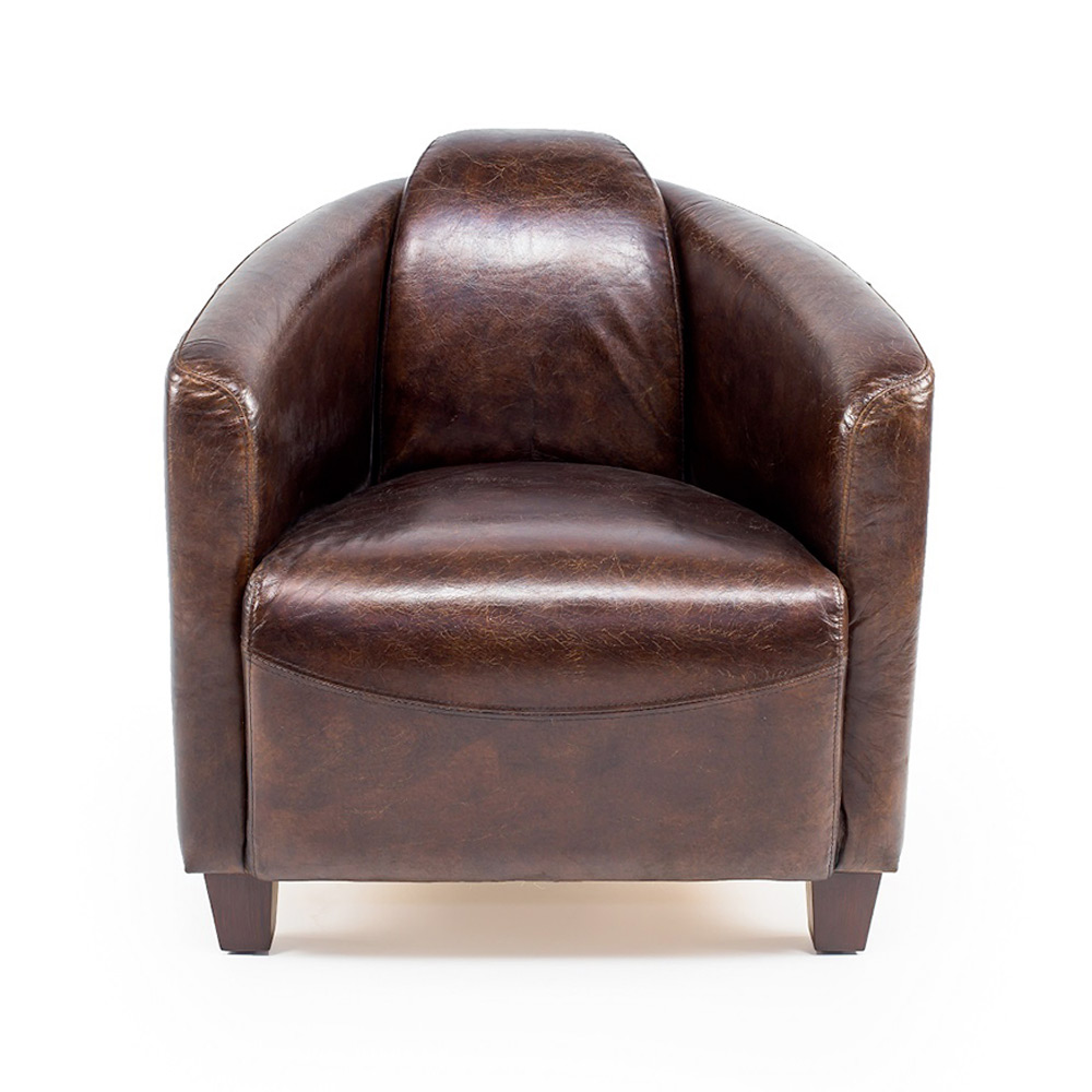 كرسي بذراعين لغرفة المعيشة مصنوع بالكامل من جلد عتيق بتأثير عتيق - ختم