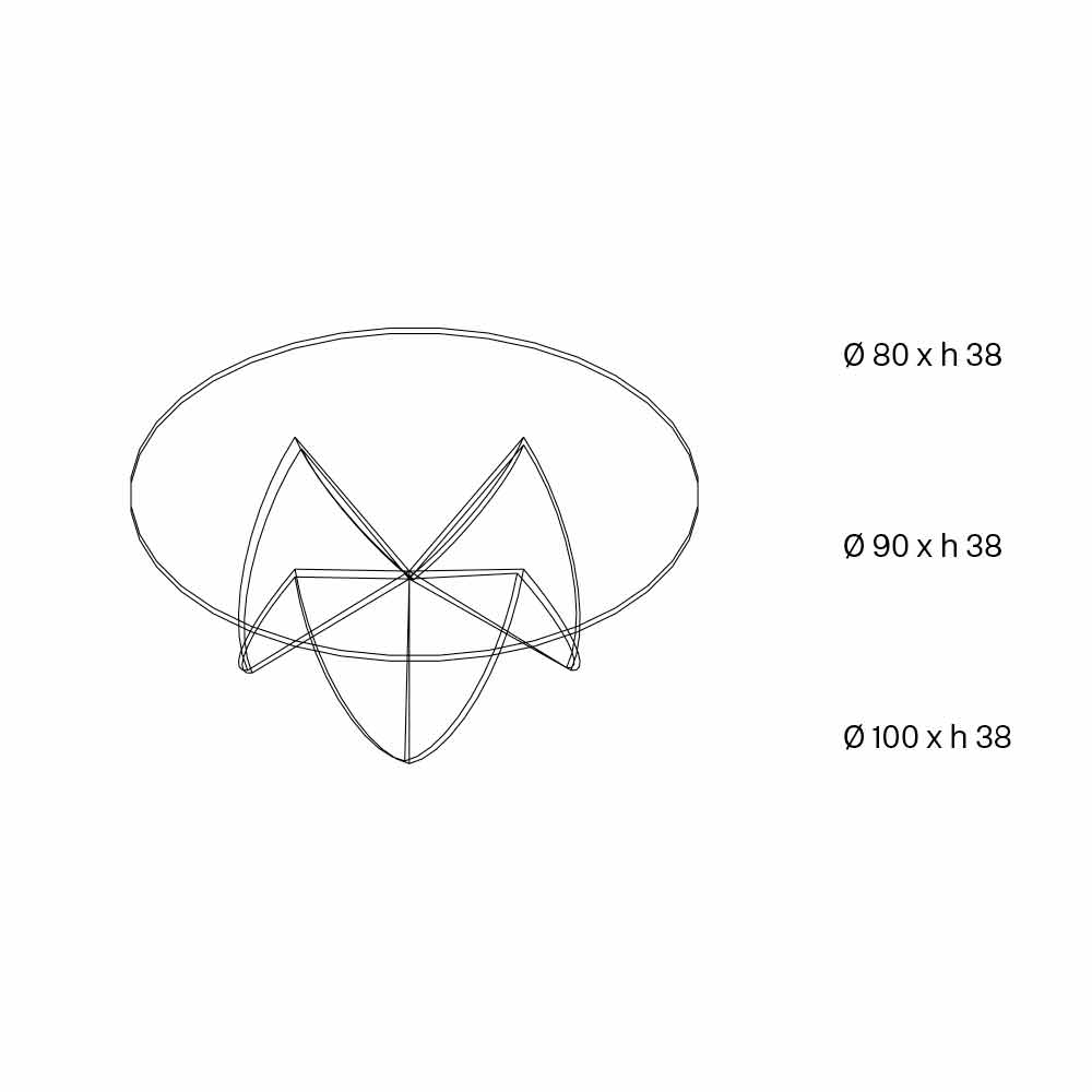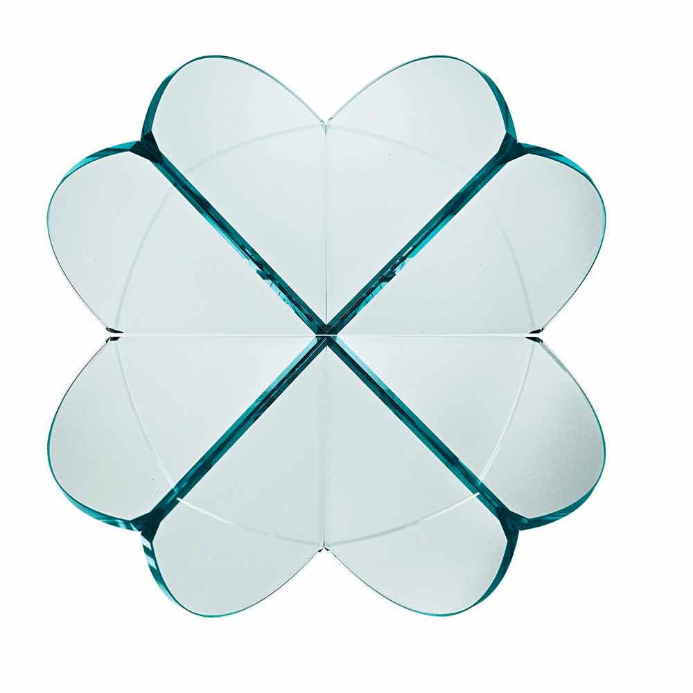 النتيجة النهائية هي قطعة أثاث تذكرنا بالزهرة الثمينة ، مصنوعة بالكامل من الزجاج المقسّى مع قاعدة محفورة بالحامض.