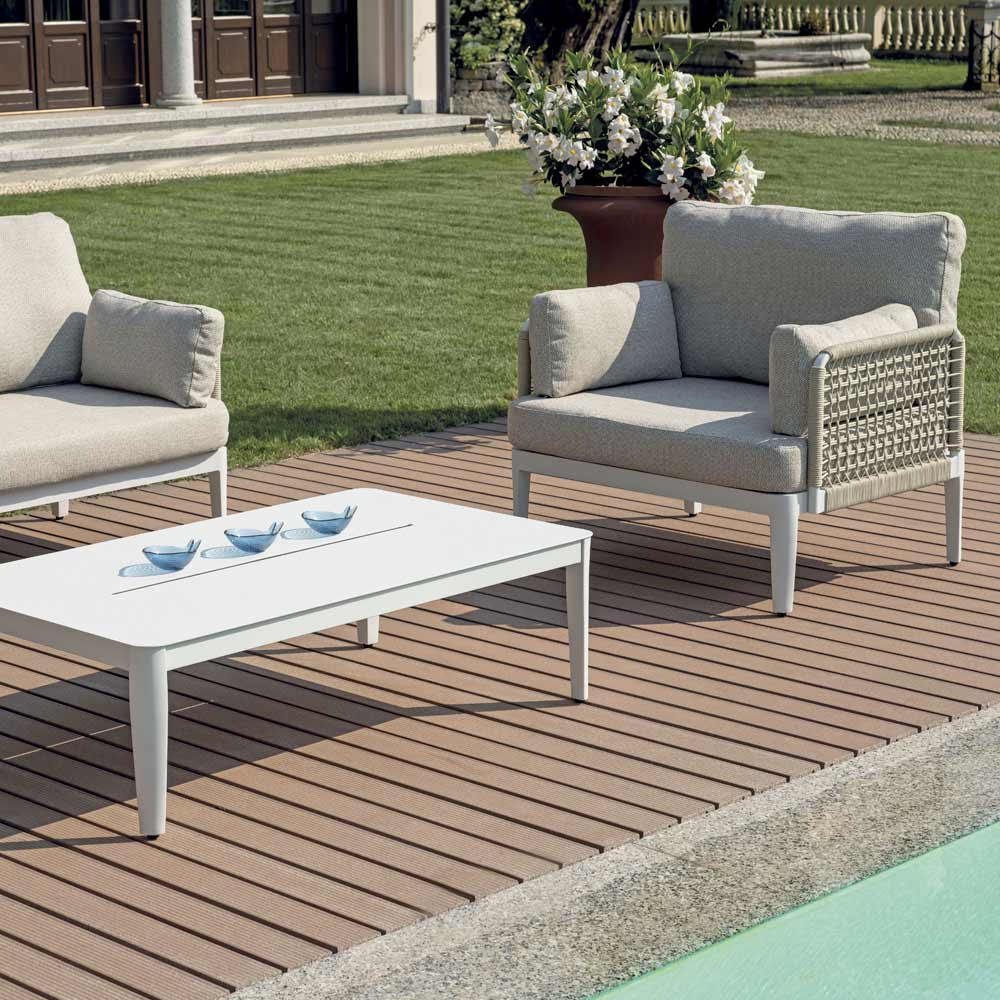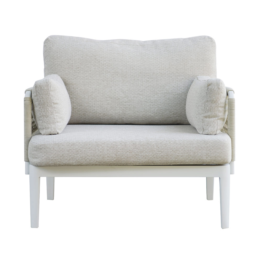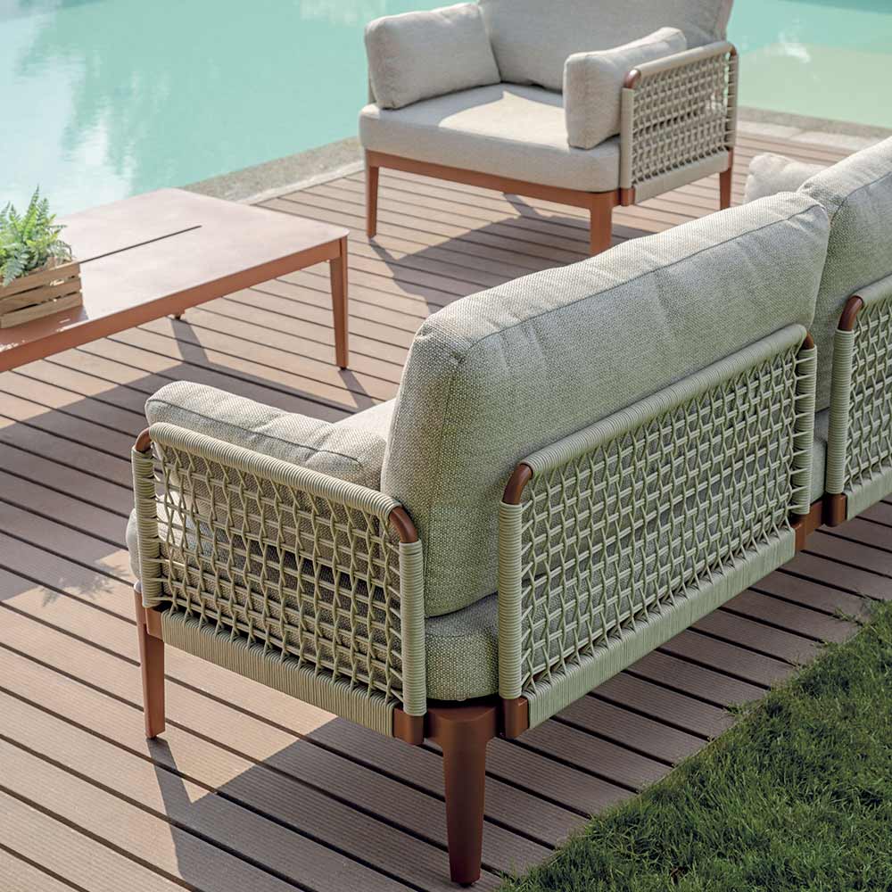 1 أريكة: إطار من الألومنيوم، وظهر وأذرع من الحبل، ووسائد من القماش قابلة للإزالة