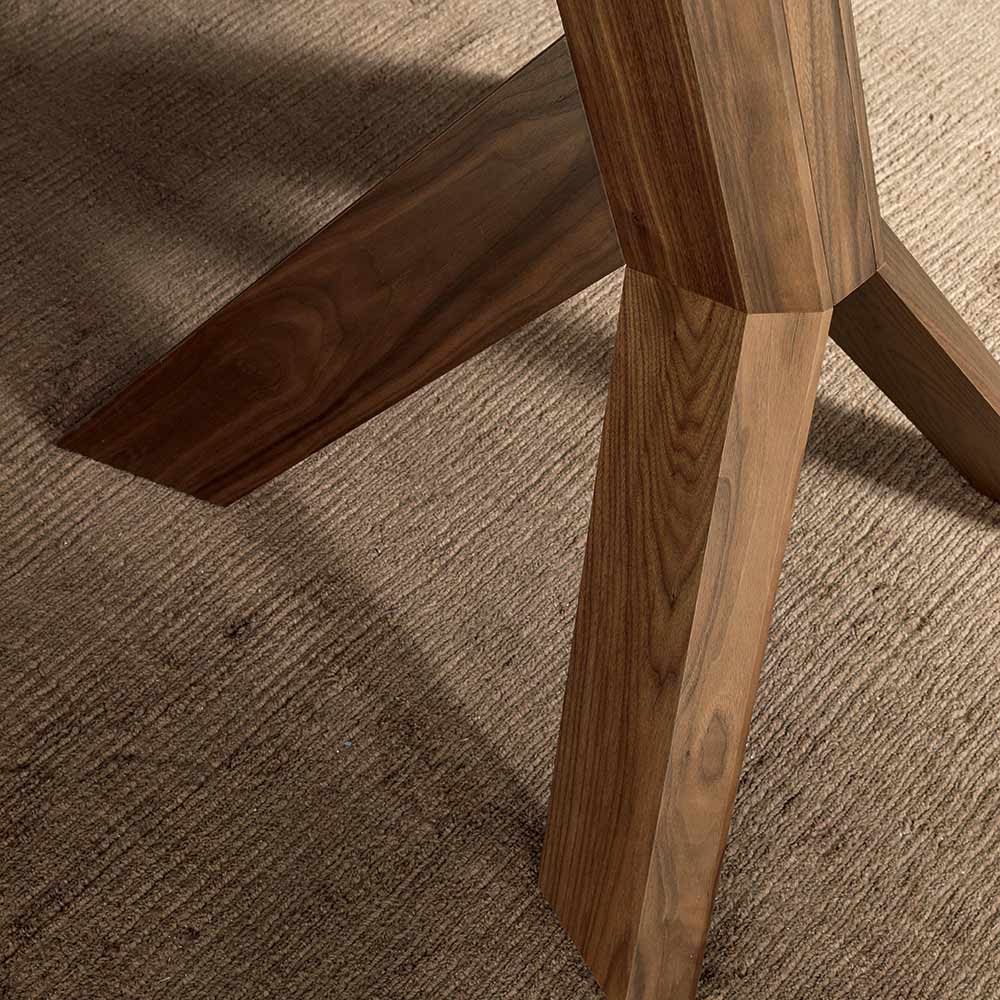 تتميز طاولة الطعام هذه بهيكل مكون من 4 أرجل من الخشب المقشر مع لمسة نهائية من خشب الجوز كاناليتووبرميل شفاف على شكل زجاج مقسّى. تكمن خصوصيتها في البنية المستوحاة من الطبيعة ، والتي تذكرنا بشكل جذور شجرة البلوط التي تهدف إلى دعم الزجاج الرقيق واللامع في الأعلى بقوة كبيرة.