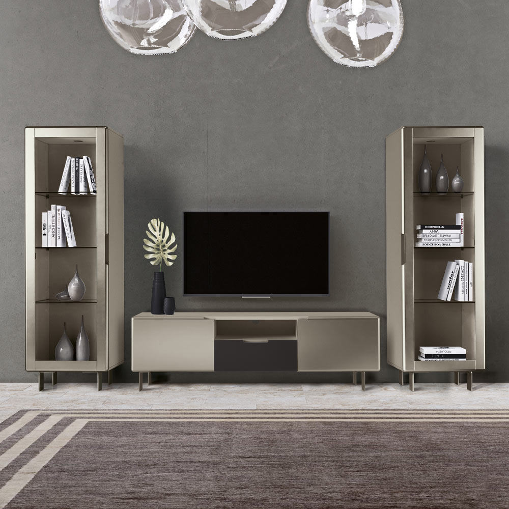خزانة عرض لغرفة المعيشة من مادة MDF بلمسة نهائية من النيكل، صنع في إيطاليا