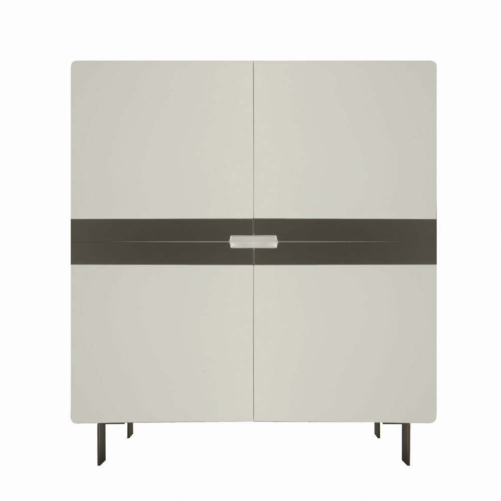خزانة جانبية لغرفة المعيشة بتصميم عصري ، مصنوعة بالكامل في إيطاليا، بأرجل حديدية مطلية بالنيكل وهيكل من خشب إم دي إف أبيض ، ومقبض من خشب توليبييه صلب مطلي بالنيكل، وأرفف داخلية من خشب إم دي إف. استخدام مواد بسيطة ومتينة يُحوّل هذه الخزانة إلى قطعة فنية.أثاثٌ مُصنّعٌ بتنوعٍ كبيرٍ ومظهرٍ جذابٍ وملفتٍ . تصميمٌ متعدد الاستخدامات وأصيلٌ، صُمّم ليُناسب استخداماتٍ مُتنوّعةٍ في مختلف أنحاء المنزل، مُكمّلاً الأثاث بشكلٍ فريدٍ يُلبّي أذواقكم واحتياجاتكم.