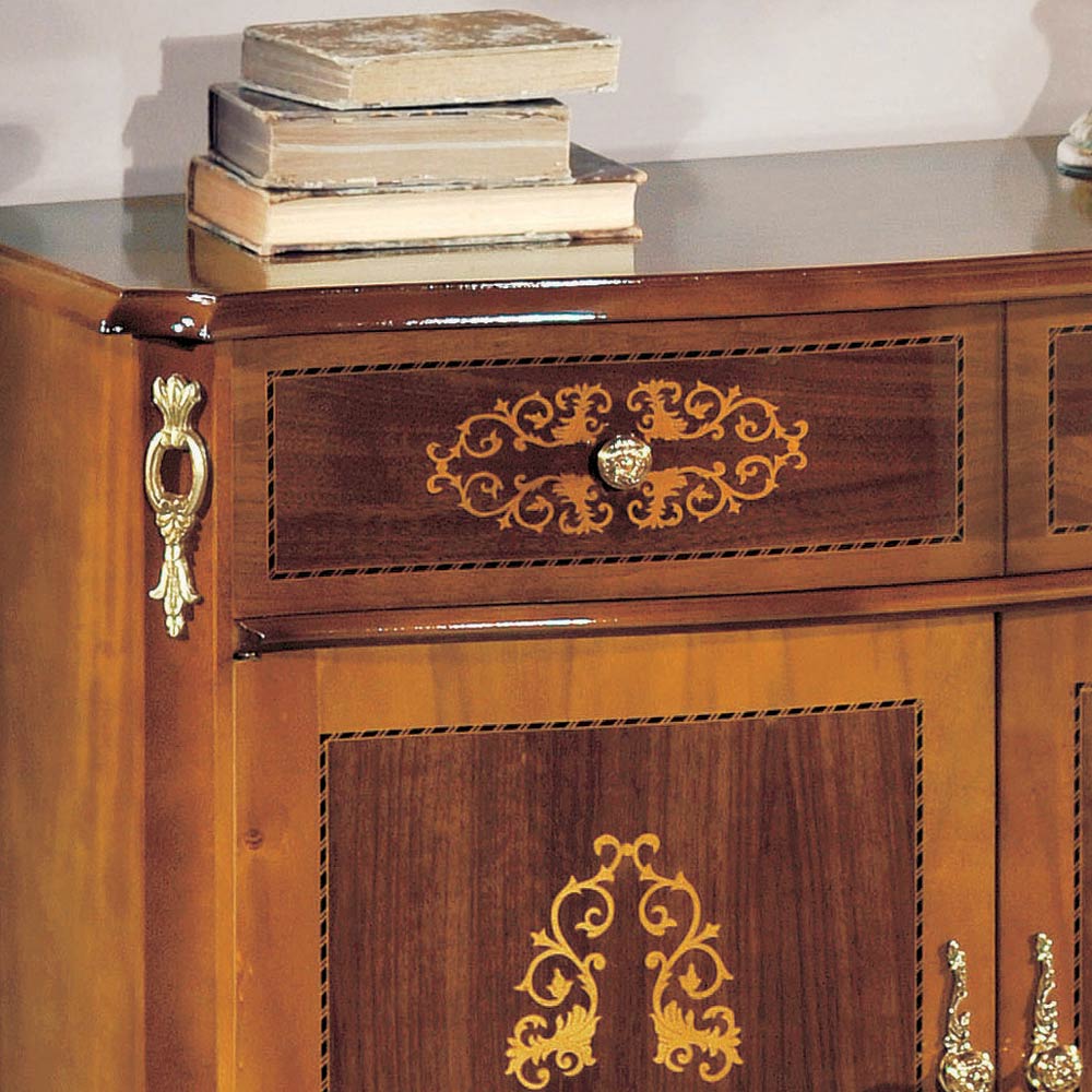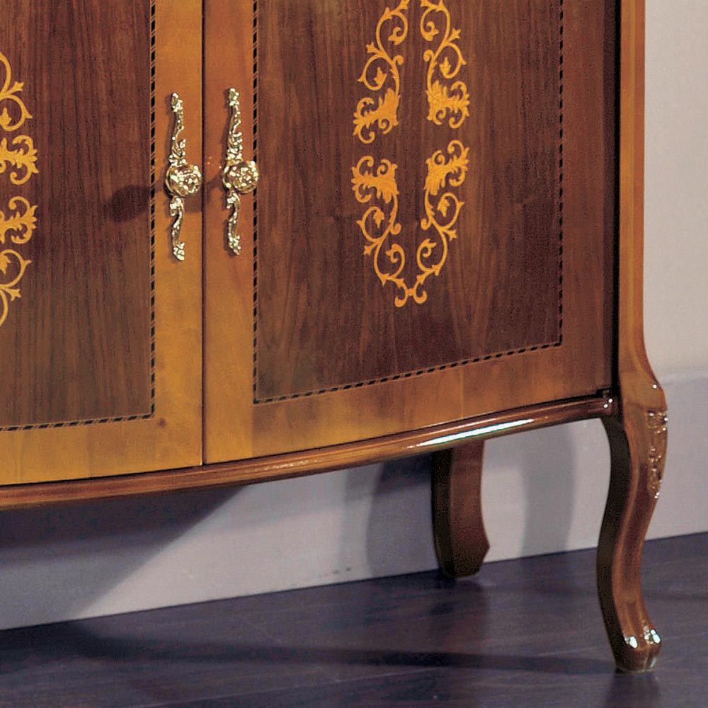 خزانة جانبية لغرفة المعيشةبتصميم كلاسيكي، مصنوعة من خشب الجوز اللامع أو الأبيض والذهبي. متوفرة بإصدارين: ببابين ودرج واحد، أو بثلاثة أبواب وثلاثة أدراج. تصميم فريد وراقي، مصنوع يدويًا بالكامل في إيطالياعلى يد حرفيين ماهرين ، بإتقان وذوق رفيع. يُصنع المنتج باستخدام أجود الخامات ، ويُنجزيدويًا بأقصى درجات العناية والاحترافية التي تميز المنتجات المصنوعة في إيطاليا .