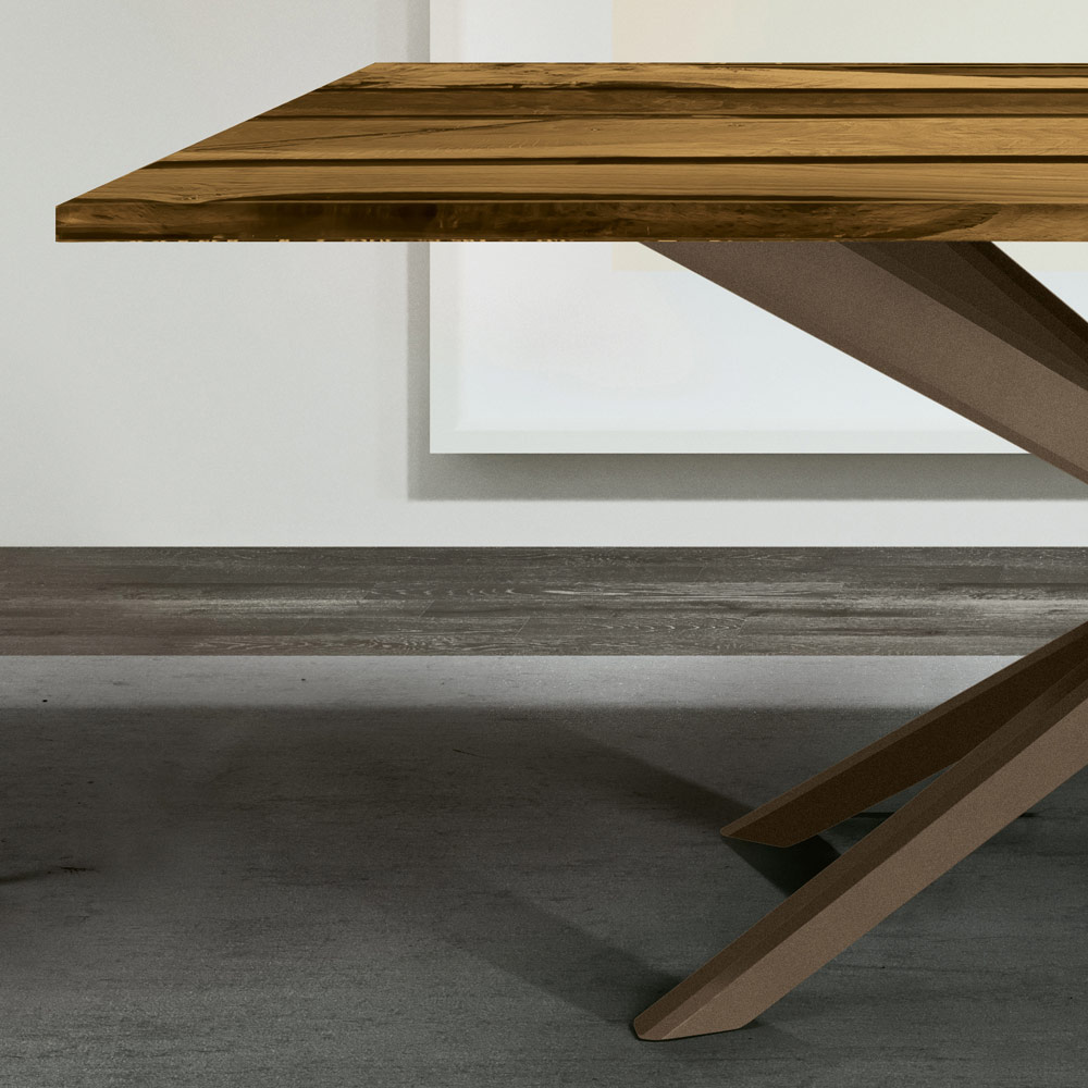 طاولة طعام مستطيلة ذات سطح خشبي وراتنجي، صنع في إيطاليا