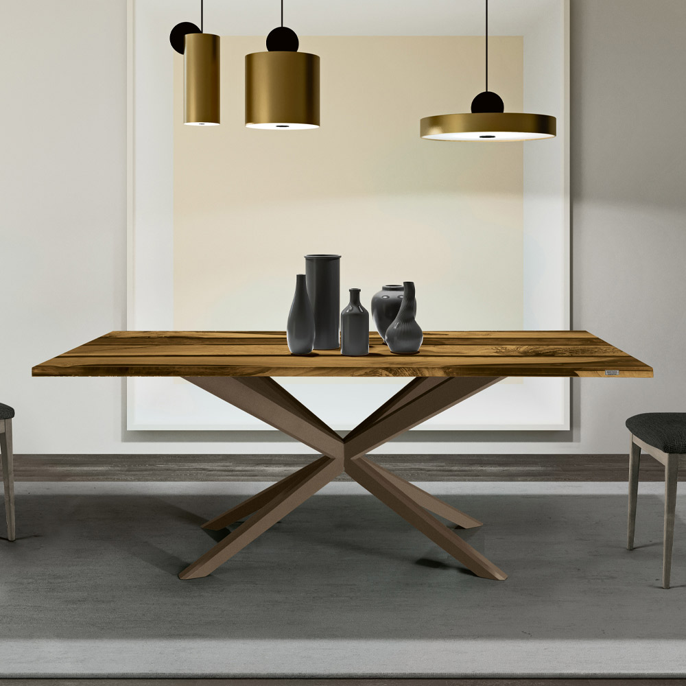 طاولة طعام مصنوعة من خشب البلوط وسطح من راتنج الإيبوكسي الملون، وقاعدة من الخشب الصلب بدعامة خشبية. قطعة أثاث راقية تخطف الأنظار بتصميمها الآسروشكلها الأصلي الذي يضفي لمسةً فريدة على أي قطعة أثاث عصرية. تتميز بسطحمن خشب البلوط المعقود الريفي المطلي بالراتنج،وقاعدة خشبية بلون الحديد . النتيجة طاولة طعام عصرية ومتطورة، تتميز بتعدد استخداماتها ، لتضفي لمسةً أنيقة على أي غرفة معيشة. هذا المنتج جزء من سلسلة منتجات عصرية جديدة، مُصممة باحترام للطبيعة. صُنع في إيطاليا بمواد عالية الجودة.