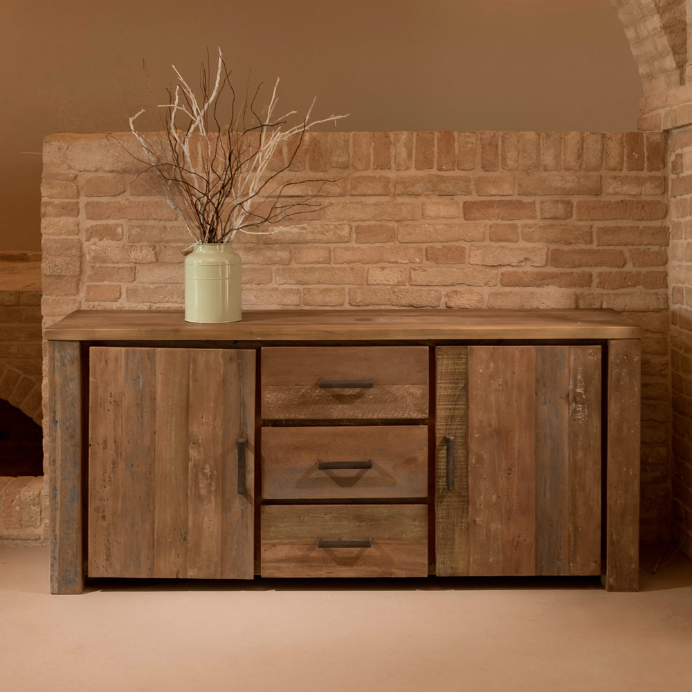 خزانة جانبية داخلية مصنوعة من الخشب المعاد تدويره مع لمسة نهائية من Pandora مع بابين و 3 أدراج مركزية .