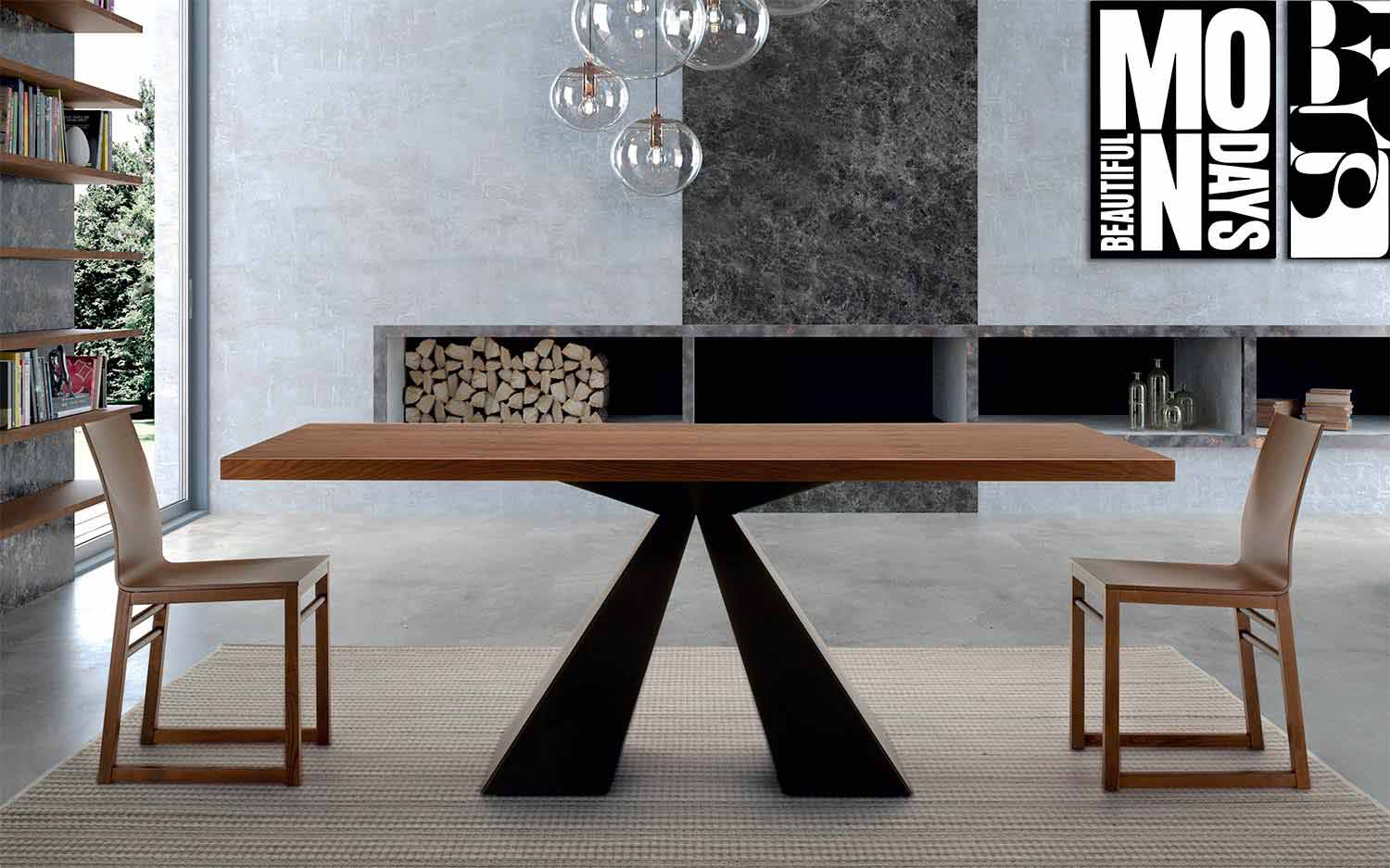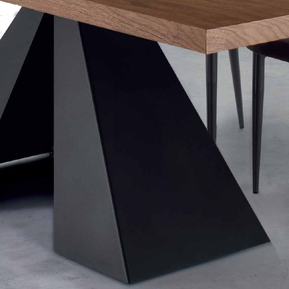 طاولة مطبخ مصممة من خشب الجوز المغطى بقاعدة فولاذية سوداء مصنوعة في إيطاليا.