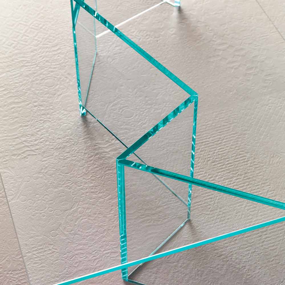 مصنوع بالكامل من زجاج شفاف للغاية لكل من القاعدة والجزء العلوي، وهو قطعة أثاث مصنوعة يدويًا في إيطاليا بمواد عالية الجودة، مثالية لمنطقة المعيشة.
