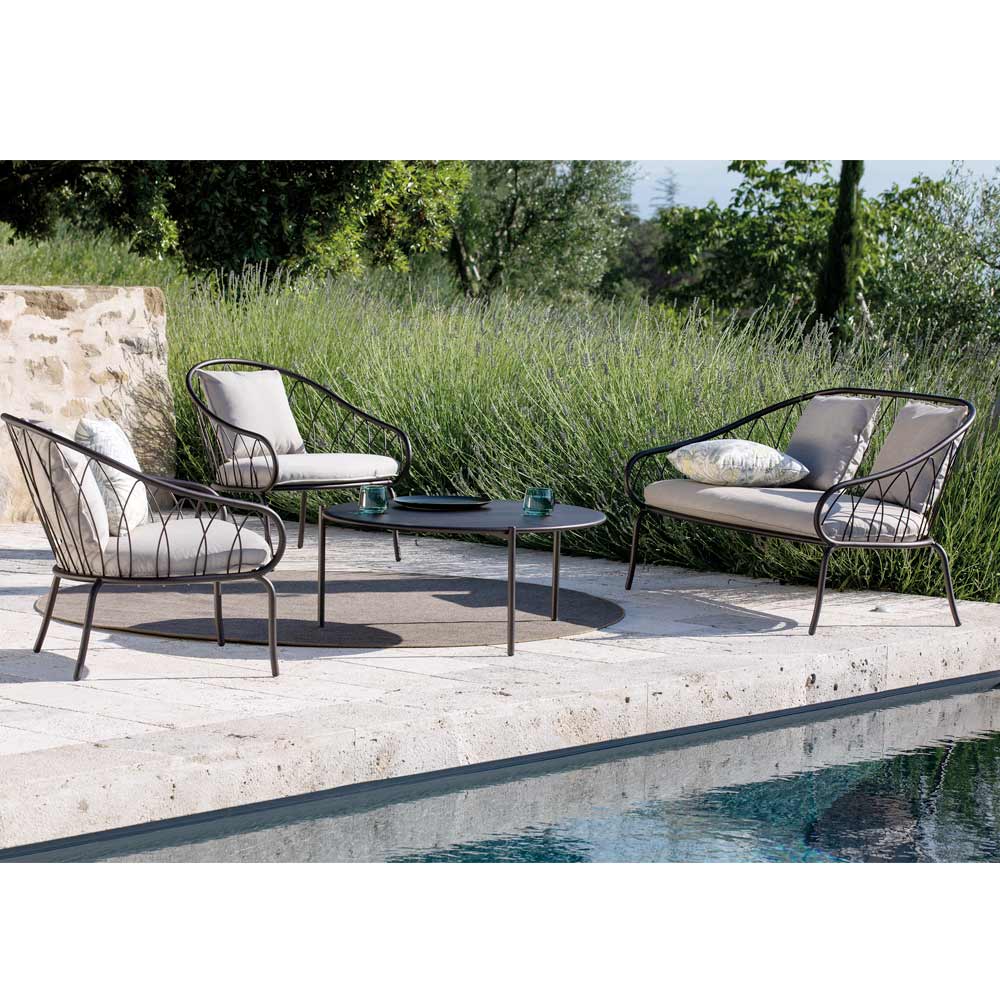 كرسي حديقة منخفض بهيكل من الحديد المجلفن المطلي بالمسحوق ومقعد من القماش صنع في إيطاليا