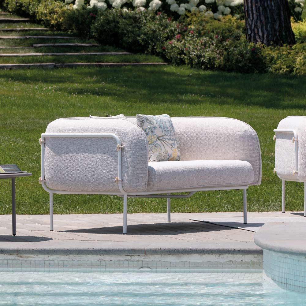 كرسي حديقة منخفض بهيكل من الحديد المجلفن المطلي بالمسحوق ومقعد من القماش صنع في إيطاليا