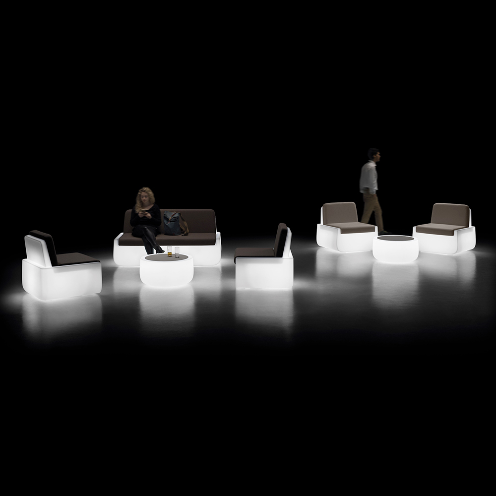 كرسي خارجي بتصميم من البولي إيثيلين مع وسادة وإضاءة LED، صنع في إيطاليا.