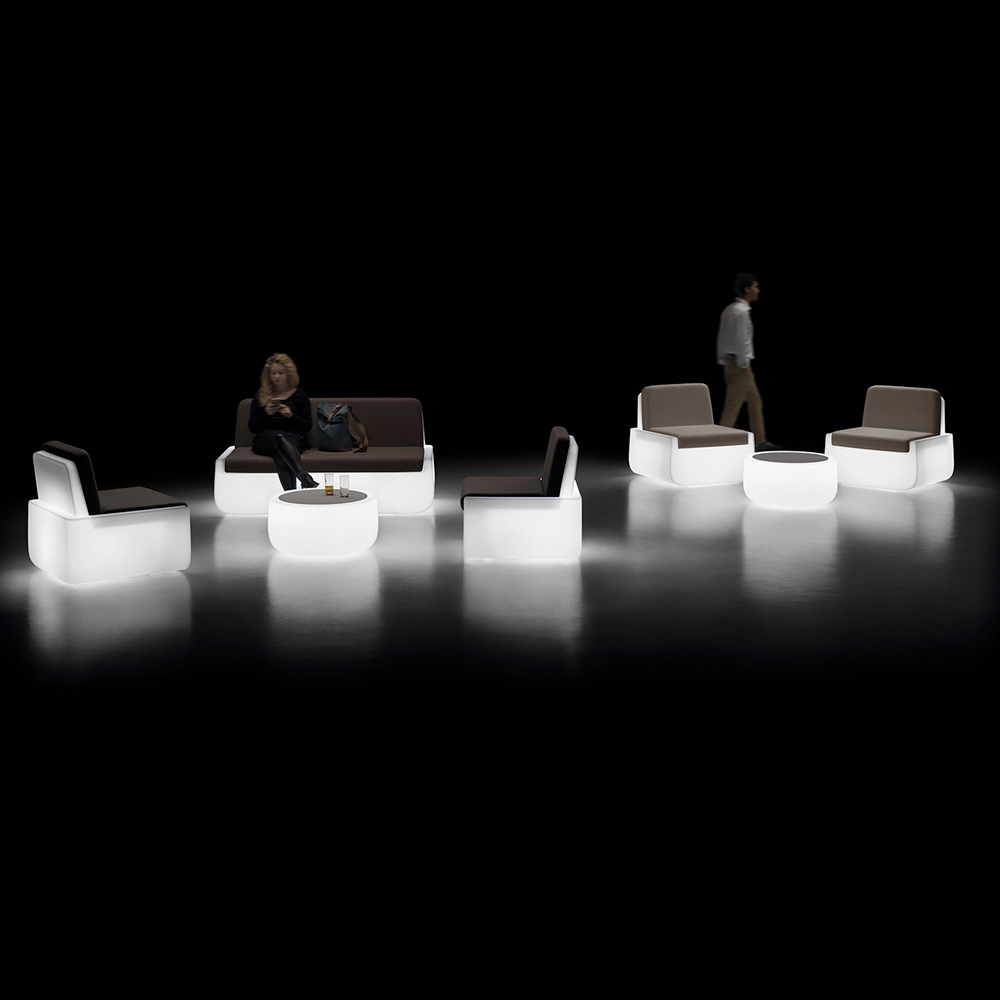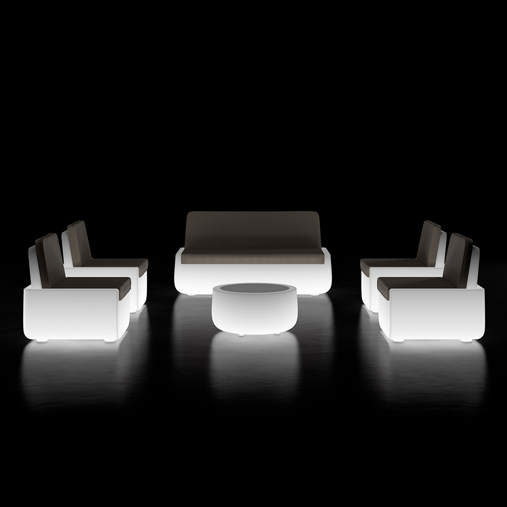 طاولة قهوة خارجية بتصميم منخفض مصنوعة من البولي إيثيلين مع سطح HPL وإضاءة LED، صنع في إيطاليا.