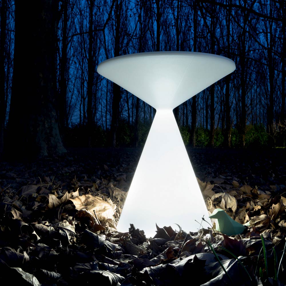 طاولة إضاءة دائرية للاستخدام الخارجي مصنوعة من البولي إيثيلين وحاوية داخلية مصنوعة في إيطاليا.