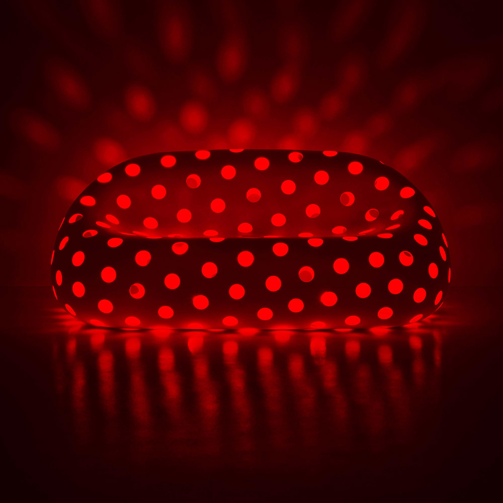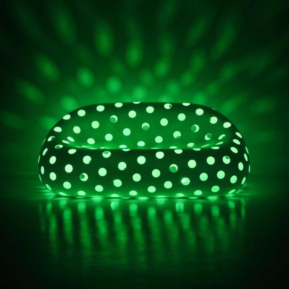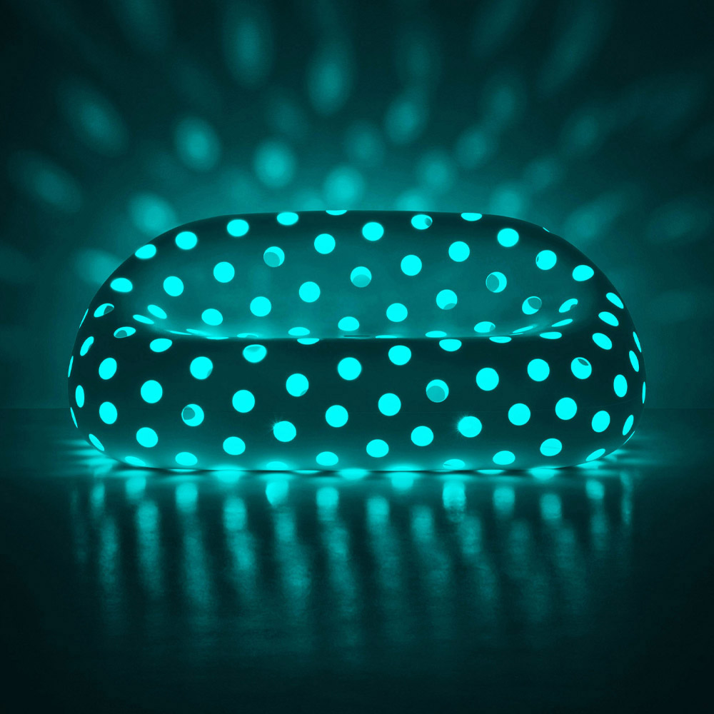 أريكة حديقة مصنوعة في إيطاليا من البولي إيثيلين الأبيض غير الشفاف، مزودة بإضاءة LED RGB ملونة للاستخدام الخارجي. فكرة أثاث مميزة، يتميز تصميمها بخطوط مريحة وعصرية ، تُضفي عليها، إلى جانب إضاءة LED، مزيجًا مثاليًا من العملية والتصميم . تشطيبها غير اللامع يجعلها مقاومة لأشعة الشمس والصدمات والحرارة، بالإضافة إلى أناقتها الفائقة وجمالها الراقي. تصميمها الفريد والمبتكر ، الذي يُبرز الأشكال، يُضفي لمسة جمالية خلابة، ويجعلها مثالية للبيئات الخارجية التي تحتاج إلى حل أثاث ذي طابع مميز. يُضفي السطح المثقب خفة غير مسبوقة على الأريكة، مُضفيًا عليها مؤثرات ضوئية مذهلة بفضل مصدر الضوء المُدمج بداخلها.