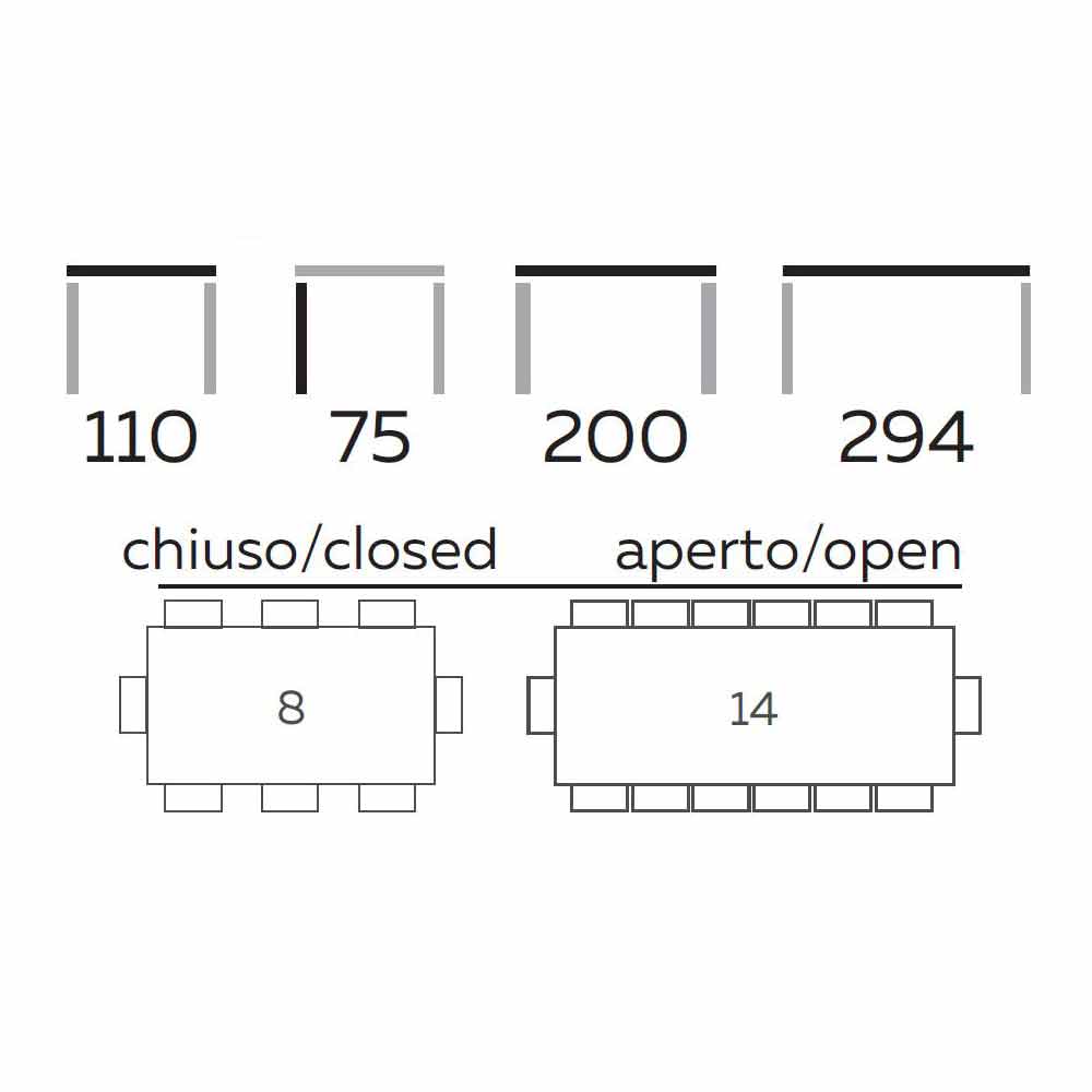 طاولة طعام عصرية قابلة للتمديد حتى 294 سم مع سطح من الفخار، منتج عالي الجودة صنع في إيطاليا.