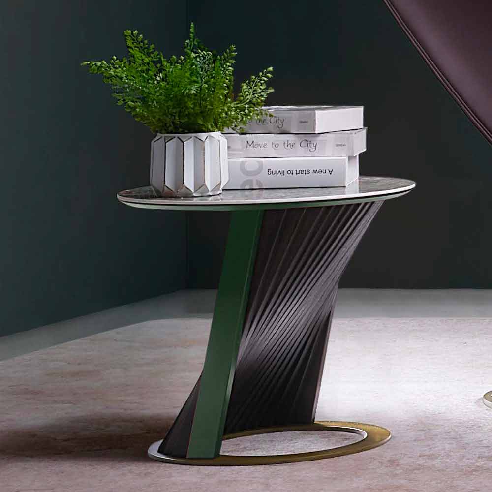طاولة قهوة إيطالية الصنع، مصنوعة من قاعدة معدنية ، عليها هيكل من شرائح خشب الدردار المدهونة يدويًا باللون الأسود والرمادي. أما سطحها، فهو دائري الشكل، ومصنوع من الخزف الحجري المصقول بتأثير الرخام. الأصالةوالأناقة هما ما يجعلان هذه القطعة فريدة وثمينة. مثالية للأماكن التي تبحث عن تصاميم إبداعية تضفي على الغرفة لمسةً من الأناقة والرقي، بفضل خطوطها المبتكرة وذوقها الرفيع. المواد المستخدمة، إلى جانب خصوصية القاعدة وشكلها، تُضفي لمسةً حيويةً على أي مكان، وتُثريه بلمسةٍ من الحيويةوالأناقة .
