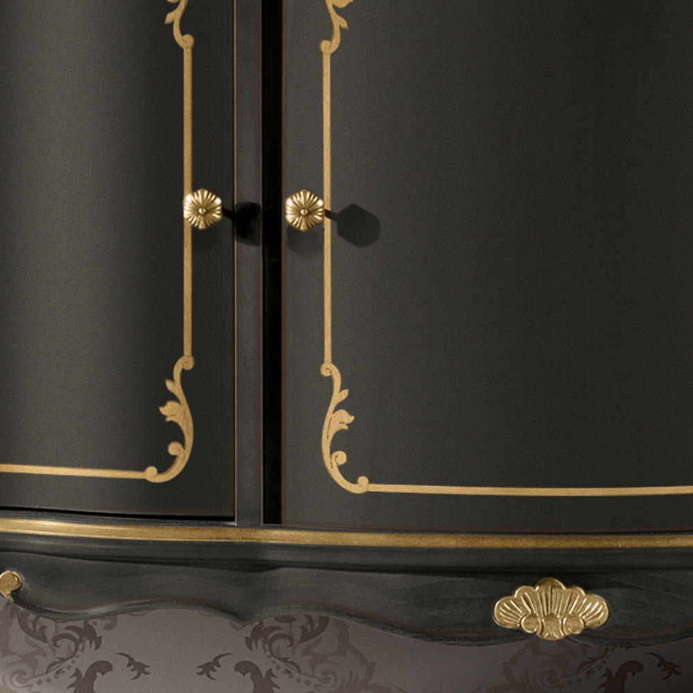 خزانة جانبية لغرفة المعيشة بثلاثة أبواب و3 أدراج، مصنوعة من الخشب المطعم ومتوفرة بتشطيبات من خشب الموكا أو خشب الجوز. قطعة فريدة وراقية، مصنوعة بالكامل في إيطاليا على يد حرفيين ماهرين ، خبراء في الفن ، يُكملون كل قطعة ببراعة وذوق رفيع. يُصنع باستخدام أجود الخامات ، ويُنجز العمليدويًا بأقصى درجات العناية والاحترافية التي تُميز المنتجات المصنوعة في إيطاليا .