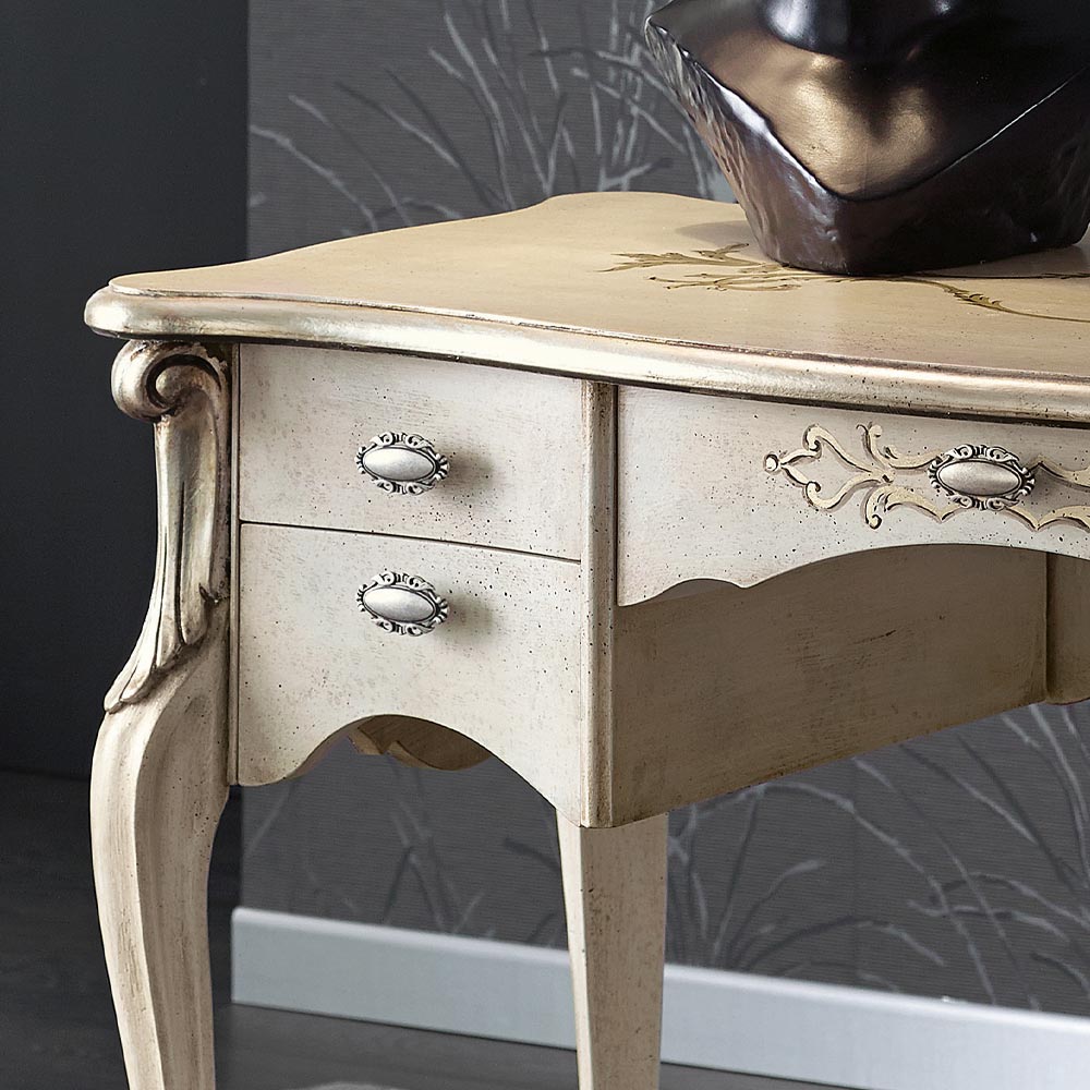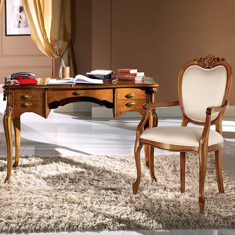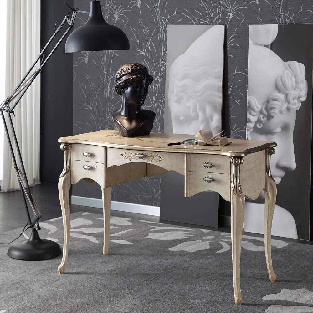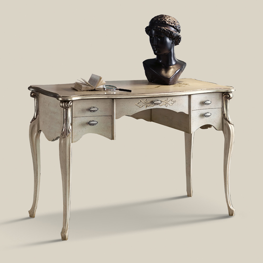 هذا المكتب الكلاسيكي مثالي لتزيين غرفة المعيشة أو غرفة الدراسة أو غرفة النوم بأناقة وفخامة. مصنوع من خشب الجوز باسانو أو الأبيض العتيق، ويحتوي على خمسة أدراج عملية. كما يمكنك الاختيار بين الإصدار المزود بباب يفتح يمينًا أو يسارًا.قطعة فريدة وراقية، مصنوعة بالكامل في إيطاليا على يد حرفيين ماهرين ، خبراء في الفن ، يُكملون كل قطعة ببراعة وذوق رفيع. يُصنع باستخدام أجود الخامات ، ويُنجز العمليدويًا بأقصى درجات العناية والاحترافية التي تُميز المنتجات المصنوعة في إيطاليا .