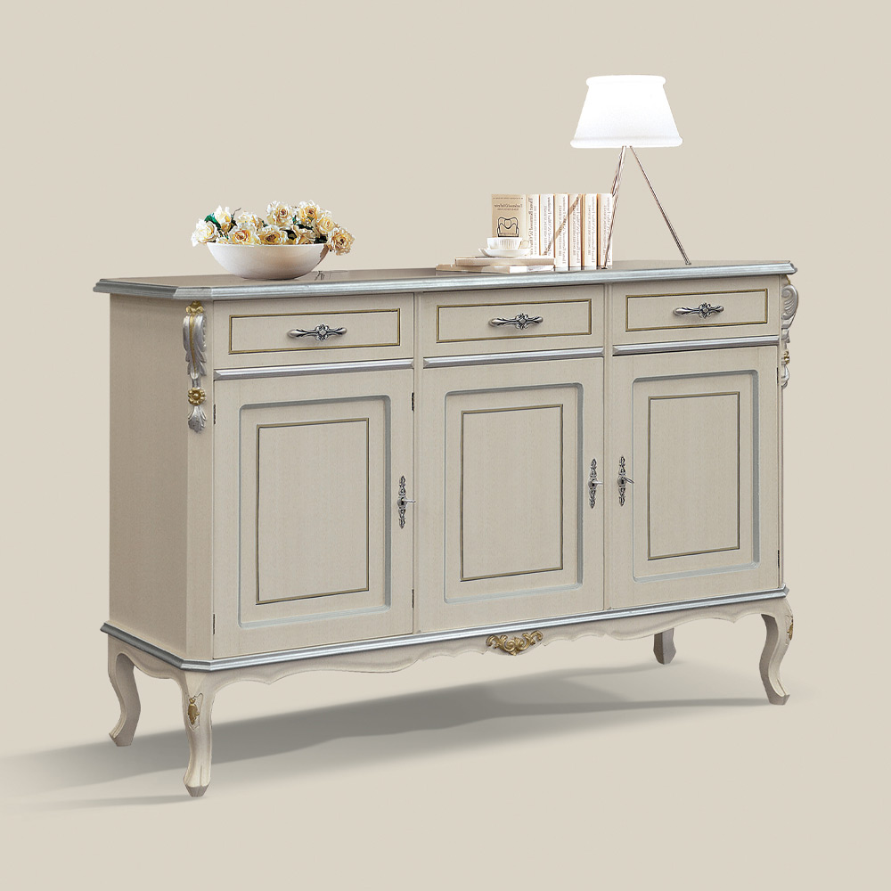 خزانة جانبية لغرفة المعيشة مصنوعة من الخشب الفاخر ، متوفرة بثلاثة أبواب و3 أدراج أو بأربعة أبواب و4 أدراج، لتناسب جميع احتياجات الأثاث. أنيقة وعصرية، هذه الخزانة الجانبية الكلاسيكية مثالية لخلق أجواء رائعة. مصنوعة يدويًا بالكامل في إيطاليا على يد حرفيين مهرة ، بإتقان وذوق رفيع. يتم الإنتاج باستخدام أجود الخامات، ويتم العمليدويًا بأقصى درجات العناية والاحترافية التي تميز المنتجات المصنوعة في إيطاليا .