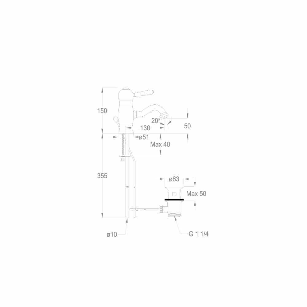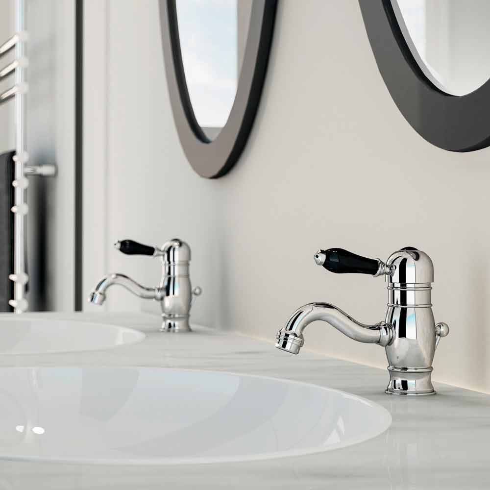 خلاط حوض بتصميم كلاسيكي، بارتفاع ١٥٠ مم، وبمسافة مركزية ١٣٠ مم، مزود بمصفاة وغطاء تصريف. صُنع بالكامل في إيطاليا بمواد عالية الجودة مطابقة للمعايير الأوروبية. يمكن تركيب هذا الخلاط في الأعلى، وهو مزود بجهاز تهوية وخرطوشة قرص سيراميك؛ ويوصى به لنظام توفير الطاقة الخاص به لتوفير المياه بمقدار 6 لتر / دقيقة وملحقاته الصلبة.
