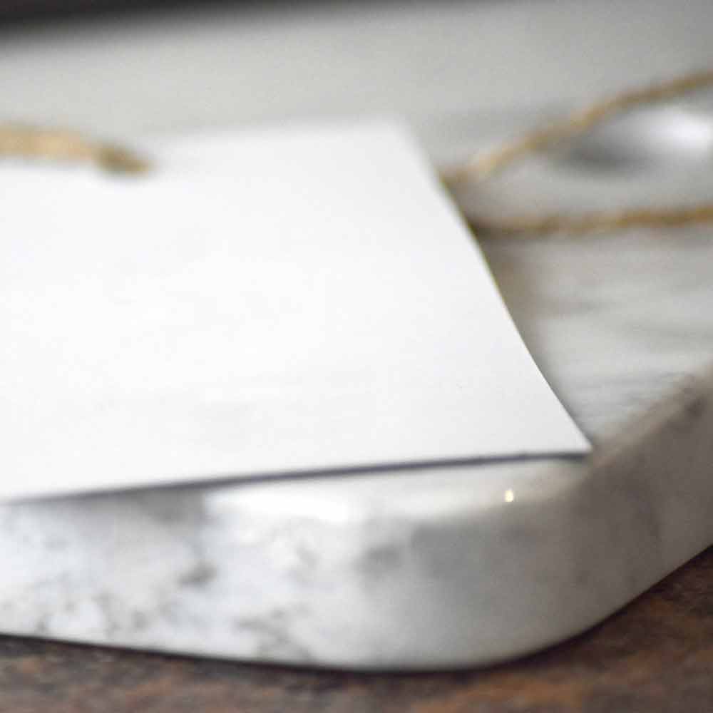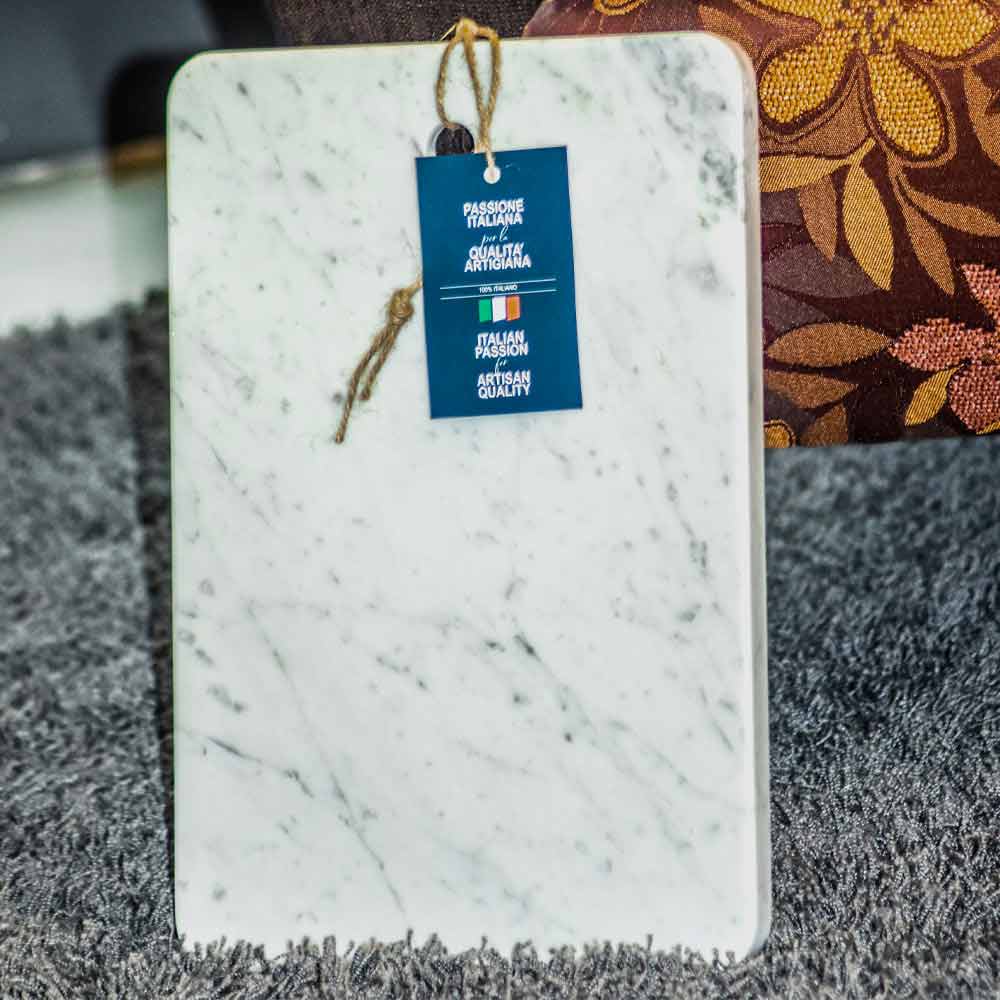 لوح تقطيع بتصميم مستطيل مصنوع من رخام كارارا الأبيض صنع في إيطاليا.
