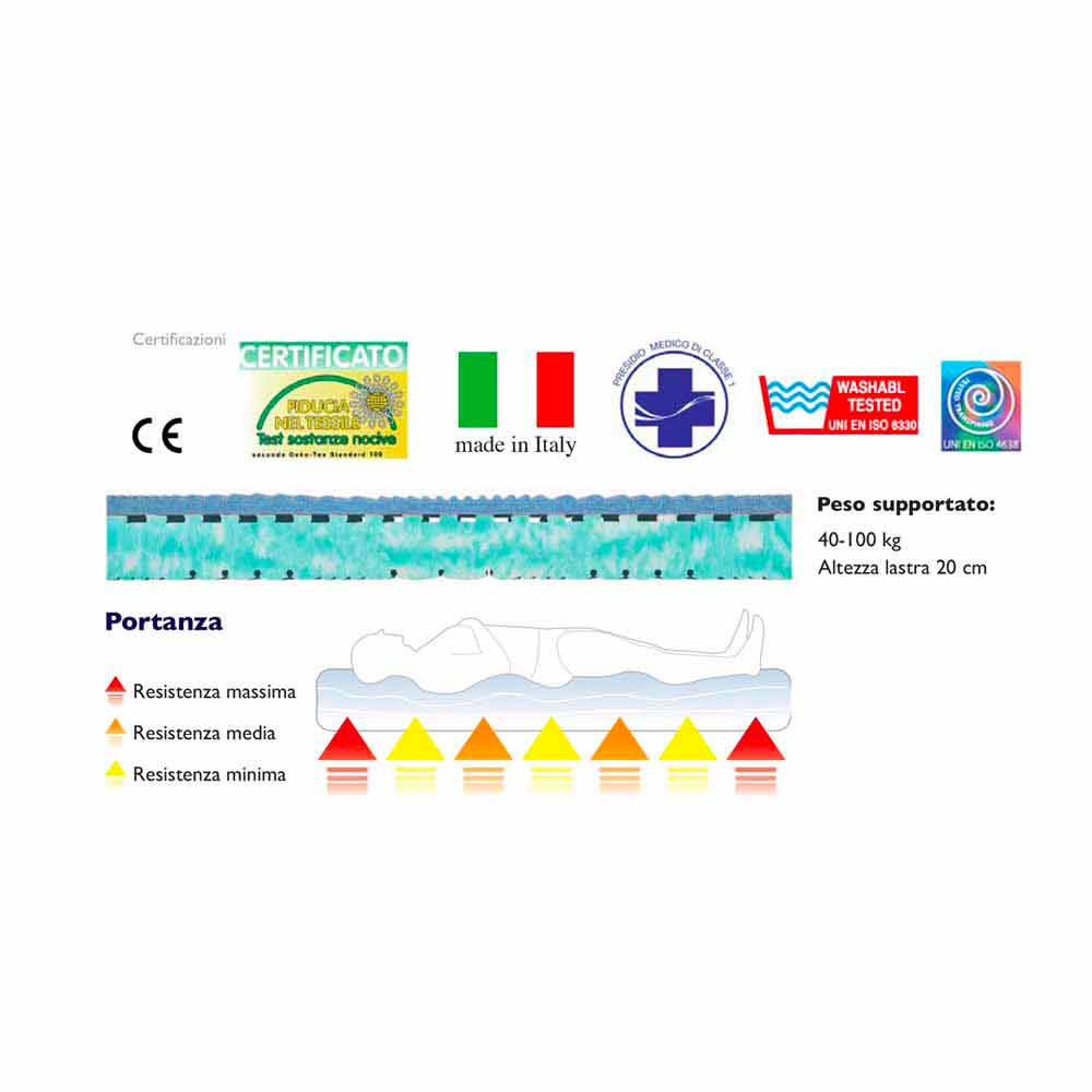 تستخدم مرتبة بيو ناتورا أحد أكثر المنتجات ابتكارًا وتطورًا، ليس فقط من حيث المنتج، بل أيضًا في تجهيز المرتبة. يتكون الجزء العلوي من طبقة من الذاكرة الحساسة للهواء ، مصممة بموجات تدليك بأطوال مختلفة لتوفير تأثير المناطق السبع ، وبفضل بنيتها المميزة، تتمكن من طرد حرارة الجسم الزائدة عبر المسامات العديدة التي تتكون منها. كما يتم ضمان أفضل عملية تبخر من خلال الملف الشخصي الخاص والثقوب التي تربط الذاكرة بطبقة الرغوة "Natura" التي تدعم وزن الجسم بشكل صحيح وفعال، كما تم تشكيلها في الجزء السفلي لتسهيل استخدام هذا المنتج على الشباك الميكانيكية. نظرًا لعدم لصقها، فإن جزء الذاكرة الحساس للهواء قابل للإزالة والغسل تمامًا ، وهي عملية لا يمكن إجراؤها على المنتجات التقليدية وغير المختبرة. ولهذا السبب نوصي باستخدام هذه المرتبة المعتمدة كجهاز طبي من الدرجة الأولى ، مع غطاء مصمم خصيصًا مع غلاف علوي مدمج. الوزن المدعوم 60/120 كجم للشخص الواحد بطانة مع شريط ثلاثي الأبعاد قابل للتنفس . جميع الأغطية مصنوعة من قماش مطاطي يلتصق بشكل مثالي، وهو مثالي لكل من يرغب في تحسين الجودة و خصائص المرتبة الخاصة بك. بفضل التطريز المستطيل أو الموجي المختلف، تتمتع الأغطية بقوام ناعم ورقيق، مع القدرة على استعادة شكلها الخفيف والمتجدد الهواء بسهولة بعد الضغط. في الواقع، يمكن غسلها وتجفيفها دون الحاجة إلى معالجات خاصة بفضل مرونتها الطبيعية. النتيجة هي منتج صحي تمامًا ومضاد للعث وطويل الأمد من أجل الحفاظ على خصائصه دون تغيير بمرور الوقت. لتحقيق مستوى عالٍ من التهوية، تم تجهيز الأغطية بشريط ثلاثي الأبعاد يسمح بدوران الهواء بشكل أفضل لضمان مناخ مثالي داخل المرتبة.