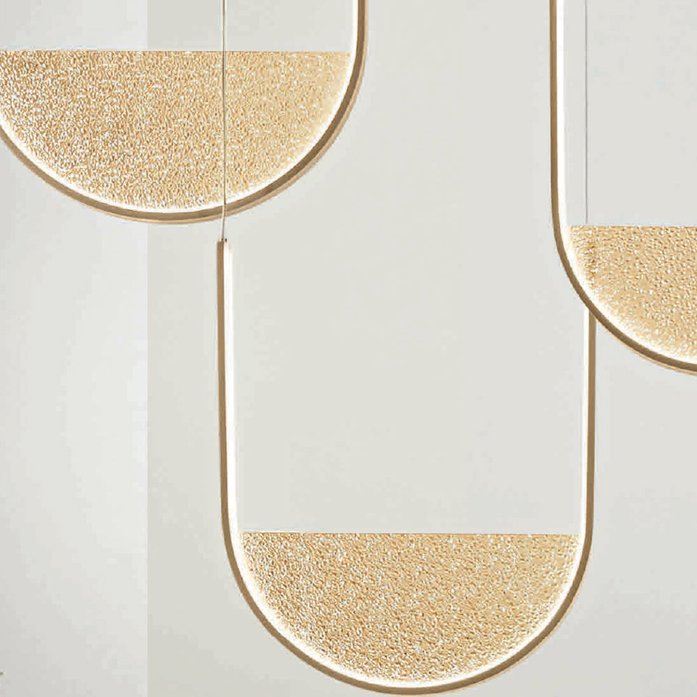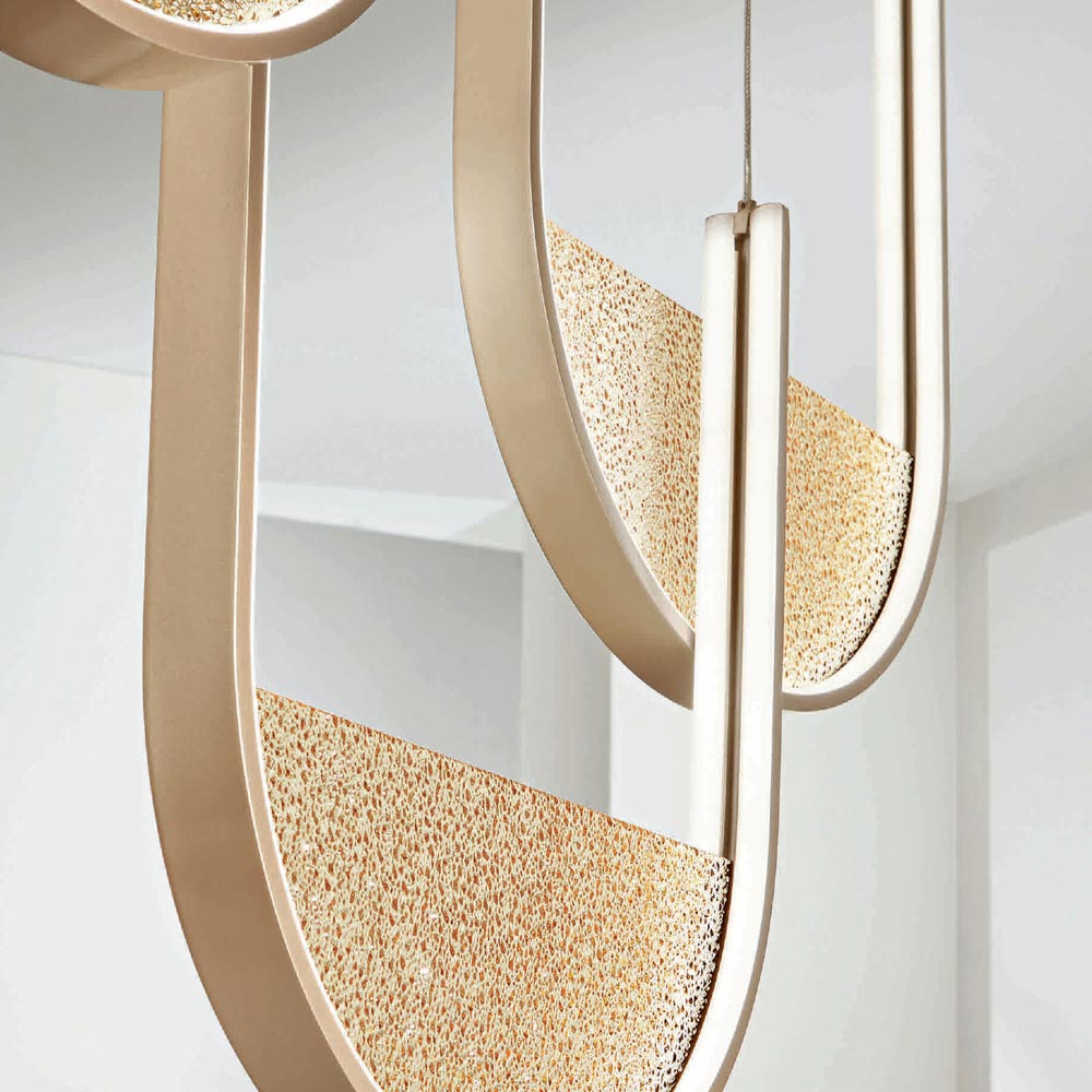 ثرياتم إنتاجها بالكامل في إيطاليا مصنوعة من معدن مطلي باللون الذهبي مع زجاج محبب قابل للإزالة باللون الكهرماني مع ضوء LED قابل للتعديلوكابلات قابلة للتعديل في الطول. يهدف هذا المنتج إلى تعزيز التقاليد من خلال نهج عصري ، حيث تجتمع الأناقة والرقي والابتكار لابتكار تصاميم جديدة تُضفي على أي بيئة لمسةً من الذوق الرفيع والطابع المميز. ومن أبرز مميزاته تميز الأشكالوجودة المواد المستخدمةوتميز مصدر الإضاءة .