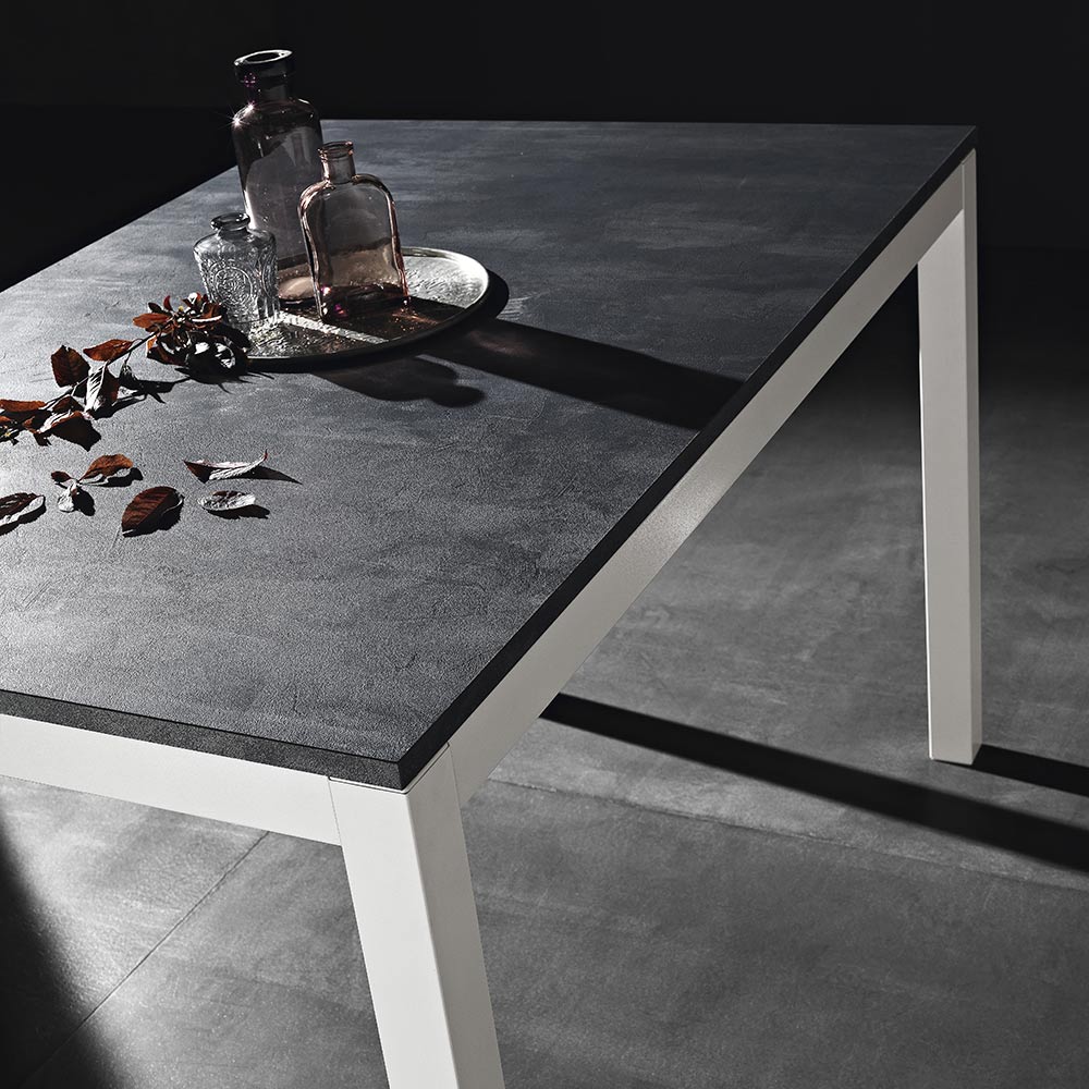 طاولة طعام قابلة للتمديد، مصنوعة من هيكل وأرجل من معدن مطلي بلون أنثراسيت غير لامع RAL 7024، وسطح من الميلامين (بسمك 22 مم)، مصنوعة في إيطاليا . تصميمها الأنيق يعكس أحدث صيحات الأثاث وأسلوب الحياة اليومية. يكمن جوهر تصميمها الحصري في التوازن المثالي بين الجمالية والعملية، مما يضمن تأثيرًا قويًا في جميع المناسبات. طاولة تجمع بدقة بين التصميم والحداثة والتكنولوجيا، لنتيجة راقية وأنيقة بشخصية قوية.