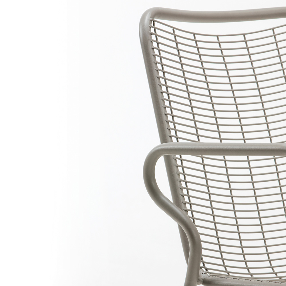 كرسي حديقة بتصميم قابل للتكديس، مزود بمساند ذراع عمليةمن الحديد المجلفن المطلي بالمسحوق، ومصنوع بالكامل في إيطاليا . قطعة أثاث عصرية تتميز بتناسق أبعادها ، مما يُبرز أناقتها، مع لمسات رقيقة ورصينة تُوازن تمامًا مع اللمسة الجمالية العصرية. تصميمه النحيف يجعله خفيفًا بصريًا، بينما تُعزز إمكانية التكديس من مزاياه العملية، بالإضافة إلى مقعده العريض والمريح، مما يجعله مثاليًا أيضًا للأماكن ذات الطابع التجاري مثل الحانات والمطاعم.