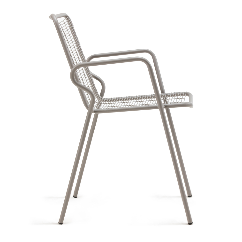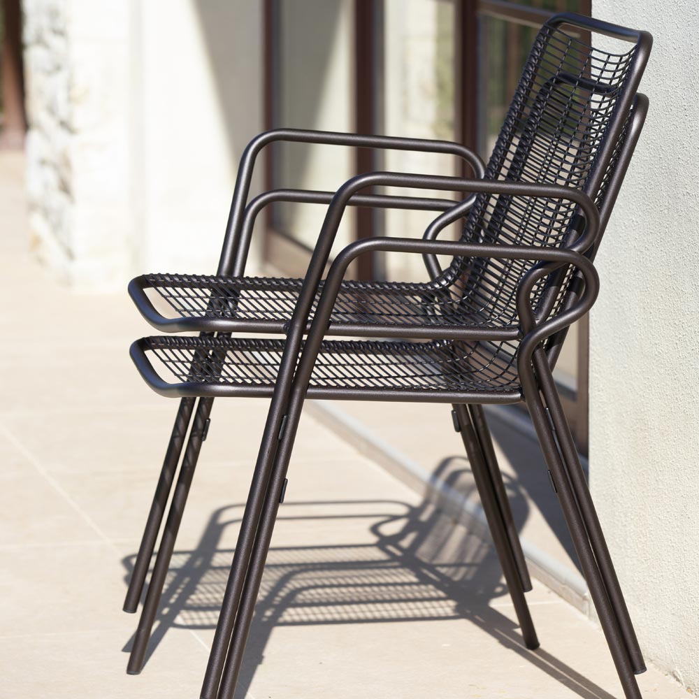 كرسي خارجي قابل للتكديس مصنوع من الحديد المجلفن المطلي بالمسحوق مع مساند للذراعين صنع في إيطاليا، قطعتين.