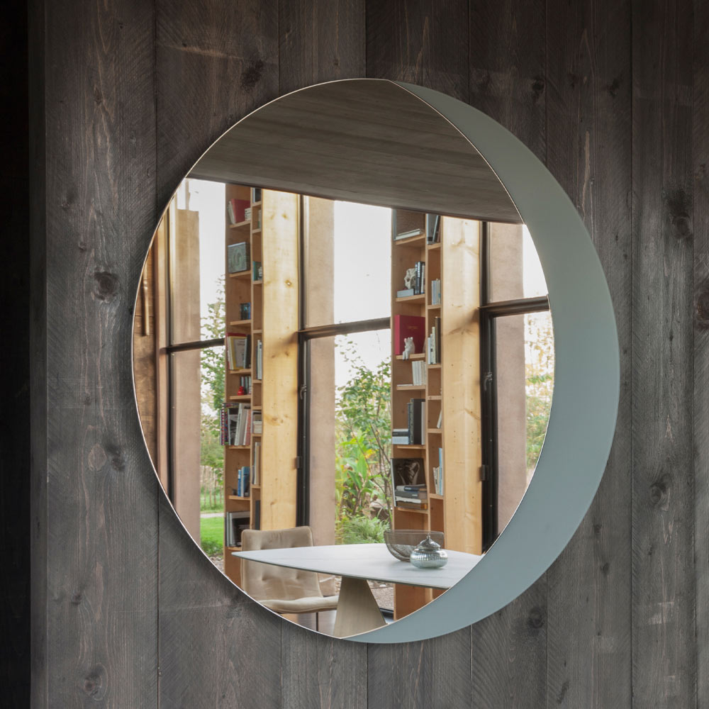 مرآة دائرية ذات قاعدة زجاجية مطلية بلون واحد، صنعت في إيطاليا