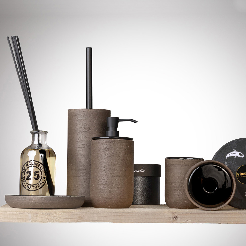 إكسسوارات الحمام المصنوعة من الطين والتربة الداكنة مصنوعة في إيطاليا.