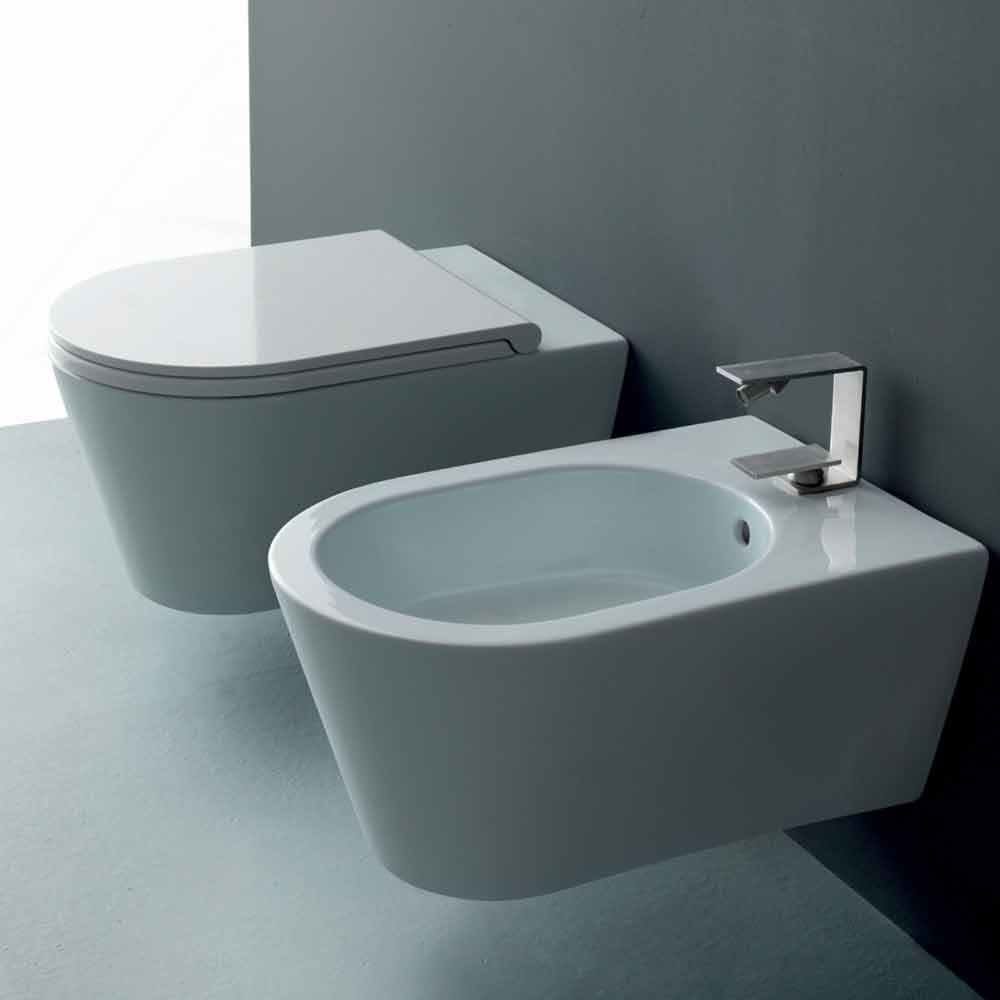 مرحاض حائطي حديث من السيراميك بتصميم دائري من الشمس، مقاس 57×37 سم، صنع في إيطاليا مرحاض سيراميك معلق مع أقواس تثبيت وتركيب سريع متضمن. الخيارات المتاحة: - مقعد أبيض بمفصلات من الكروم - مقعد بمفصلات كروم ناعمة الإغلاق