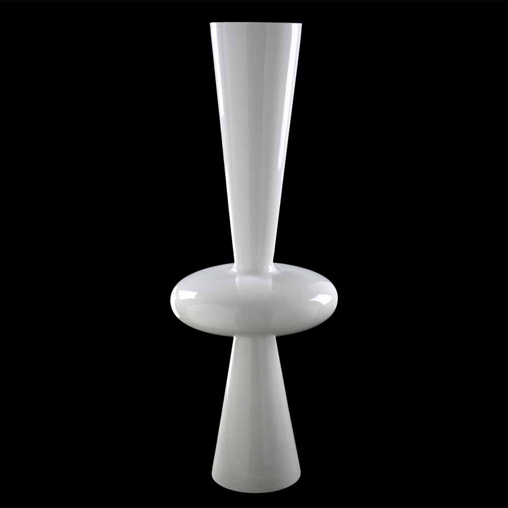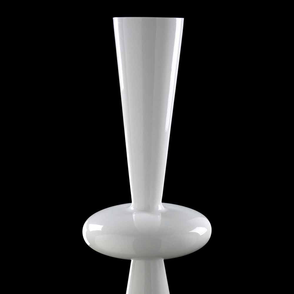 مزهرية زخرفية طويلة من السيراميك الأبيض مصنوعة يدويًا في إيطاليا.