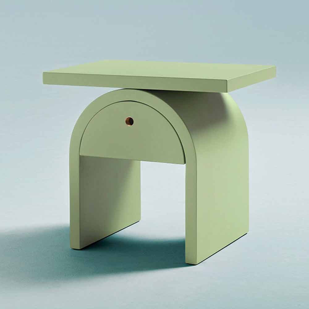 إعادة تفسير حديثة للأشكال التقليدية للطاولة بجانب السرير ، لعمارة منزلية صغيرة وساخرة وخفيفة.