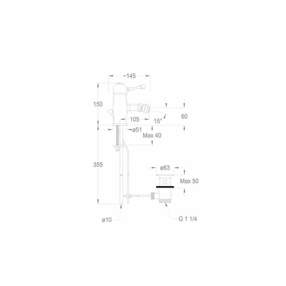 خلاط بيديه بتصميم كلاسيكي من النحاس المطلي بالكروم بارتفاع 150 مم ومسافة مركزية 105 مم، مع تصريف وقضيب سحب. صُنع بالكامل في إيطاليا بمواد عالية الجودة مطابقة للمعايير الأوروبية. يُمكن تركيب هذا الخلاط في الأعلى، وهو مُجهز بمُهوّئ قابل للتعديل وخرطوشة قرص سيراميكي؛ يُوصى به لنظام توفير الطاقة الذي يُوفر 6 لترات/دقيقة من المياه، ولملحقاته الصلبة.