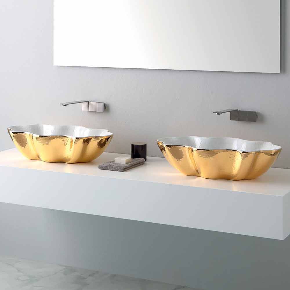 حوض غسيل بتصميم عصري من السيراميك Cubo صنع في إيطاليا كوبو هو حوض غسيل مصنوع في إيطاليا من السيراميك الفاخر للغاية متوفر بلونين الذهبي والأبيض. يتميز بتصميم متوازن ومحدد، في الواقع، محيطه يذكرنا كثيرًا بنجمة البحر.