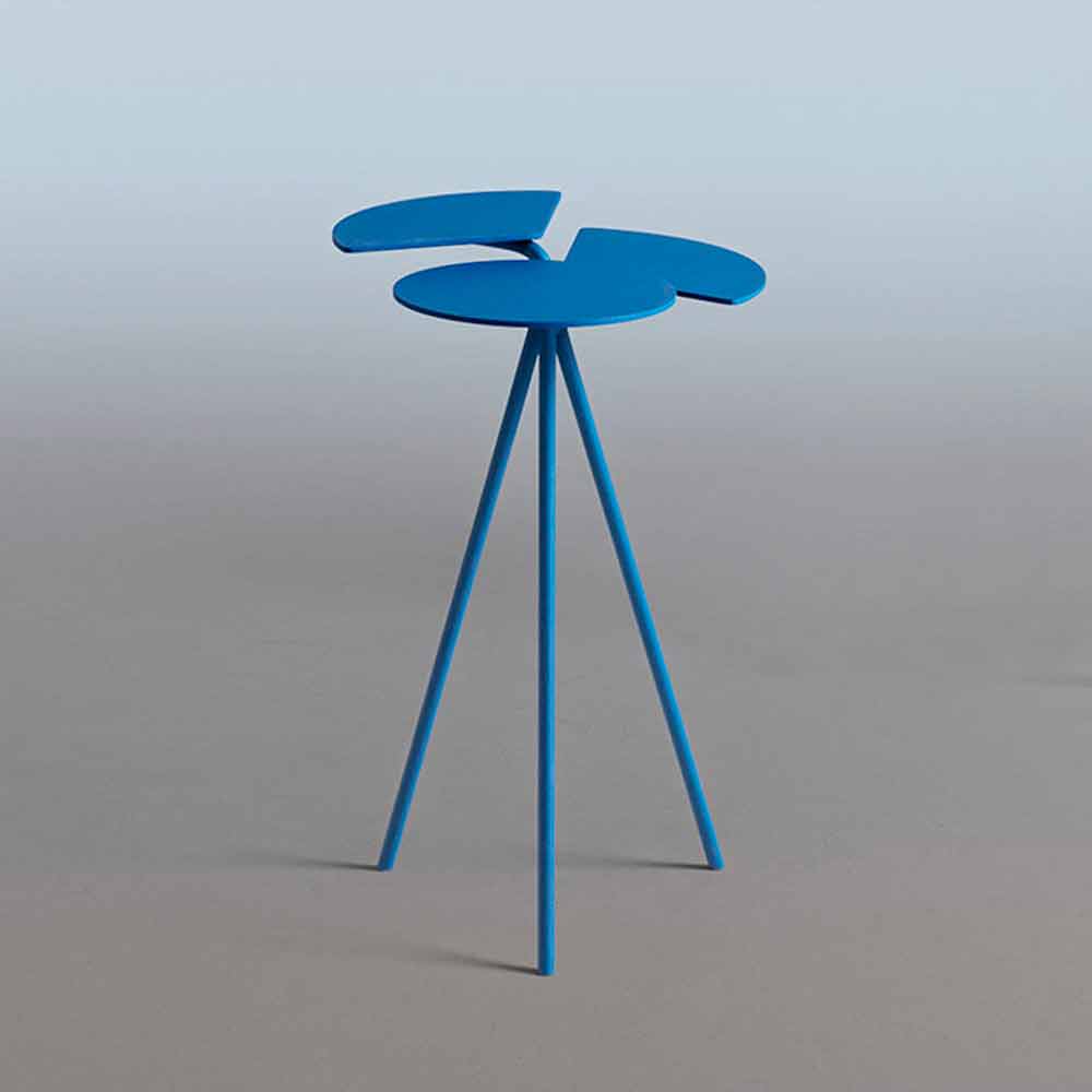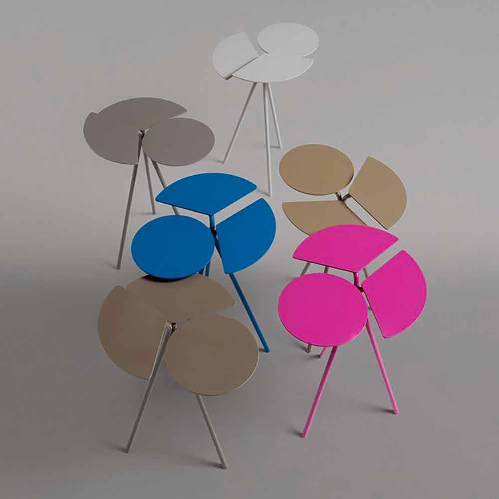 طاولة قهوة دائرية ثلاثية القوائم لغرفة المعيشة، تصميم عصري من صفائح معدنية مطلية بألوان مختلفة، سطح أصلي صنع في إيطاليا.