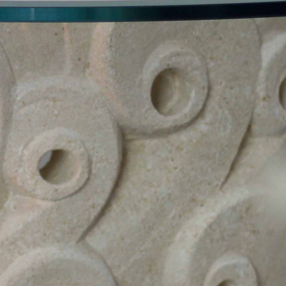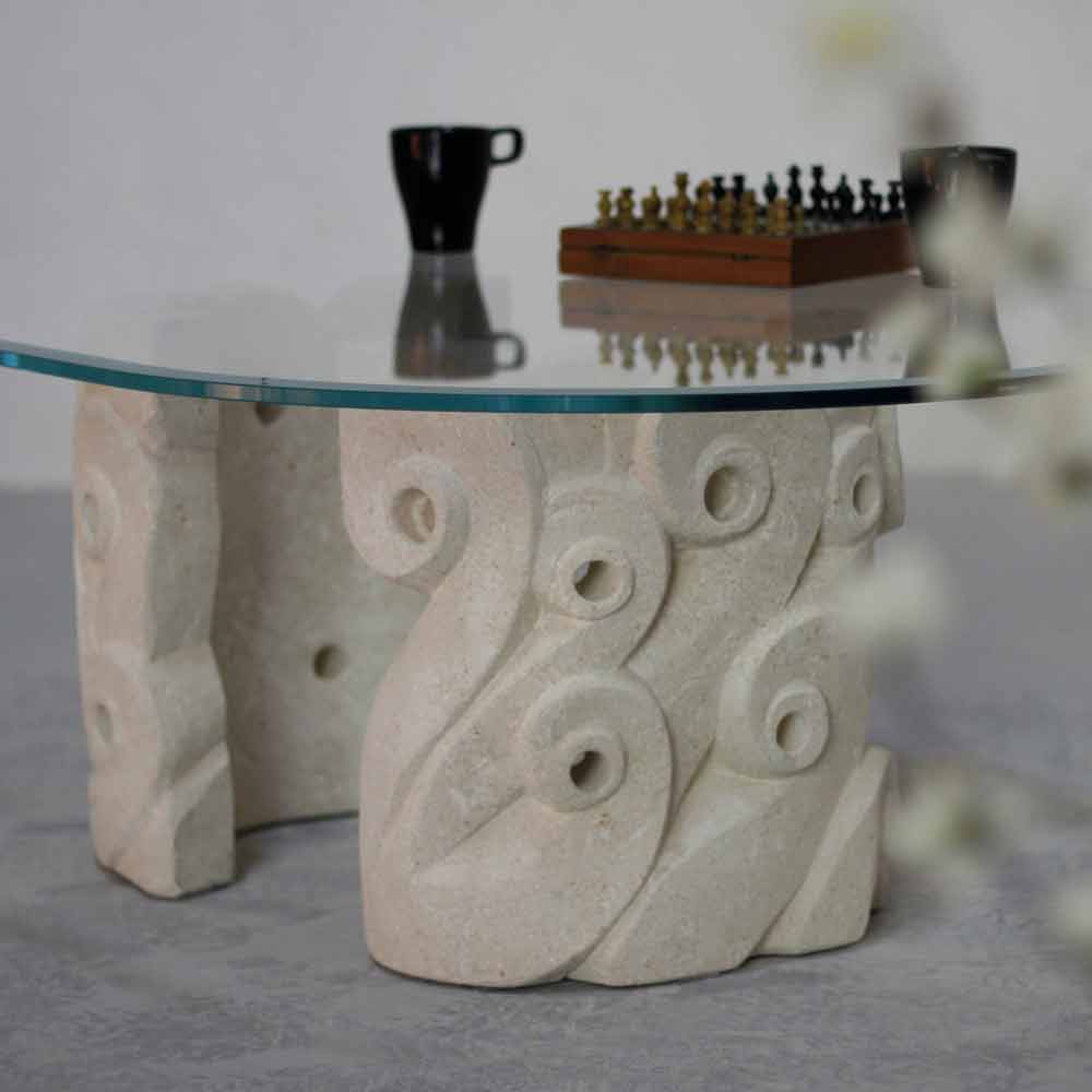 طاولة قهوة بتصميم كلاسيكي مصنوعة من الحجر الطبيعي والكريستال ليندوس طاولة قهوة ليندوس مصنوعة بالكامل في إيطاليا . قاعدتها مصنوعة من حجر فيتشنزا الطبيعي، ونُحتت يدويًا من كتلة الحجر الأصلية. سطح الطاولة مصنوع من كريستال عائم (سمكه ١٢ مم)، موضوع على القاعدة. يتكون حجر فيتشنزا الطبيعي في الغالب من كربونات الكالسيوم، والذي نشأ من انهيار الشعاب المرجانية واستقرار الكائنات البحرية، مثل الأصداف والقشريات والطحالب، في قاع البحر. تأتي طاولة القهوة ليندوس مع شهادة أصالة مرقمة.