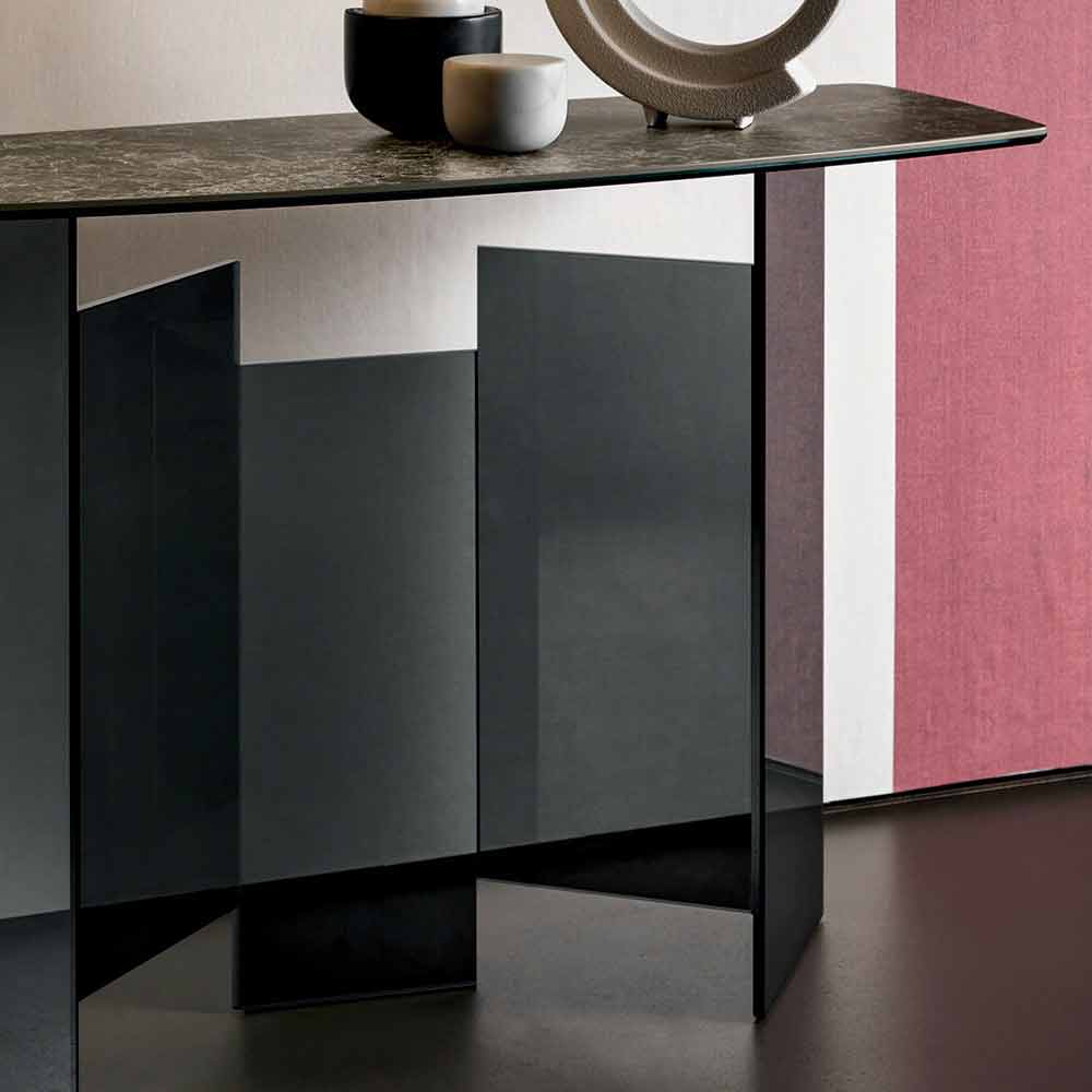 وحدة تحكم حديثة للمعيشة مع سطح سيراميك Emperador أو Noir Desir وقاعدة زجاجية، مصنوعة يدويًا في إيطاليا.