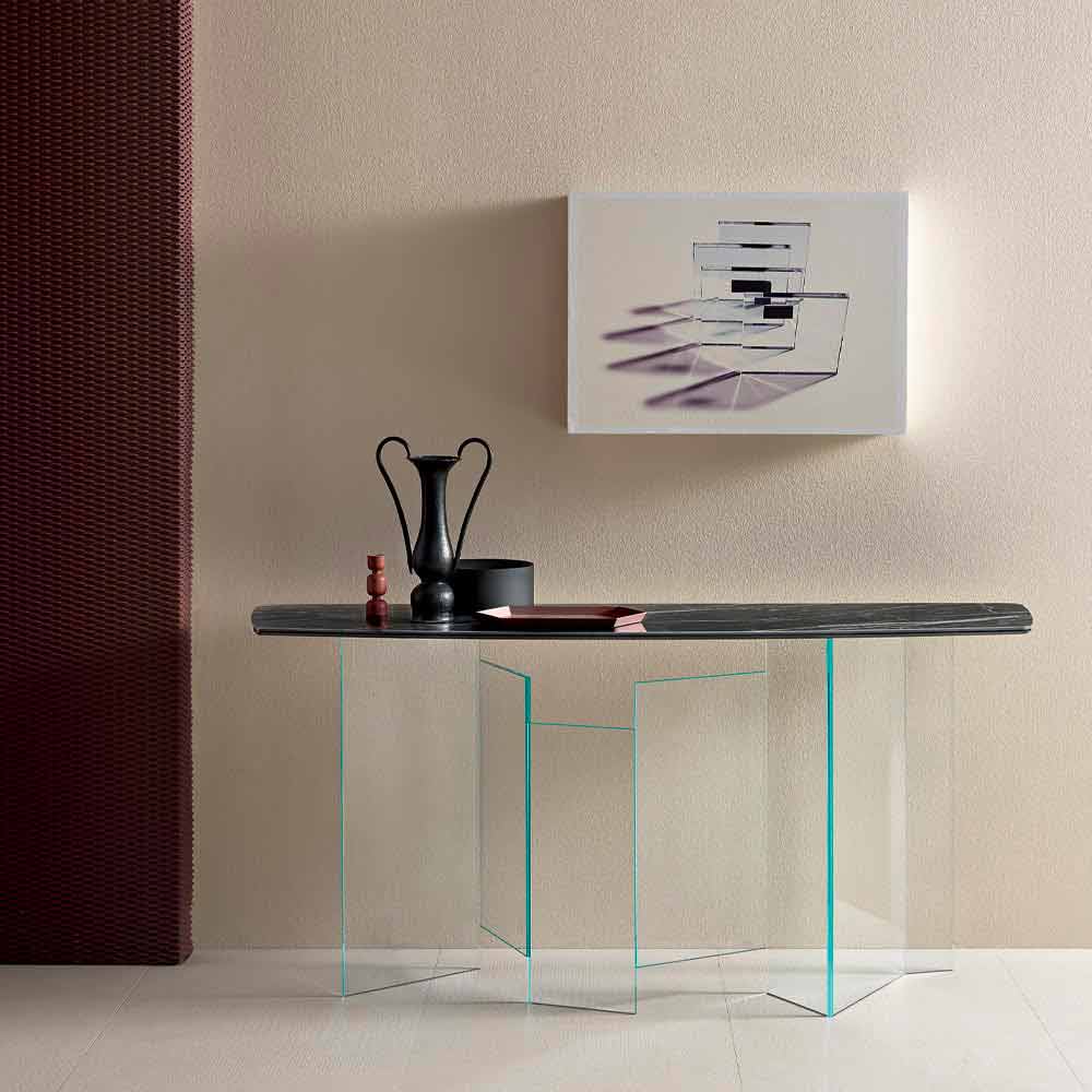 سطح من السيراميك اللامع Noir Desir وقاعدة زجاجية شفافة للغاية.
