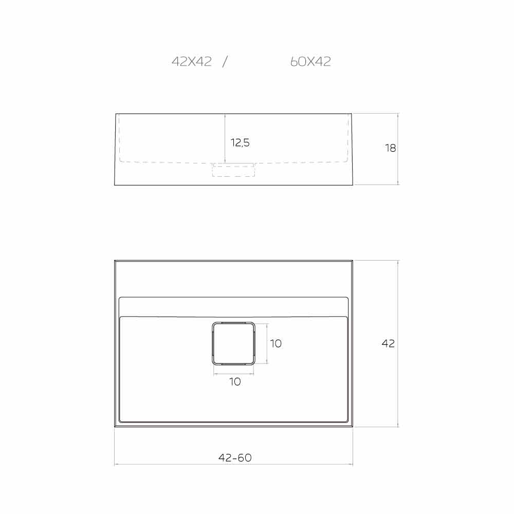متوفر بـ 16 لونًا مختلفًا وحجمين مختلفين: - الطول 42 × العرض 42 × الارتفاع 18 سم؛ - الطول 60 × العرض 42 × الارتفاع 18 سم.